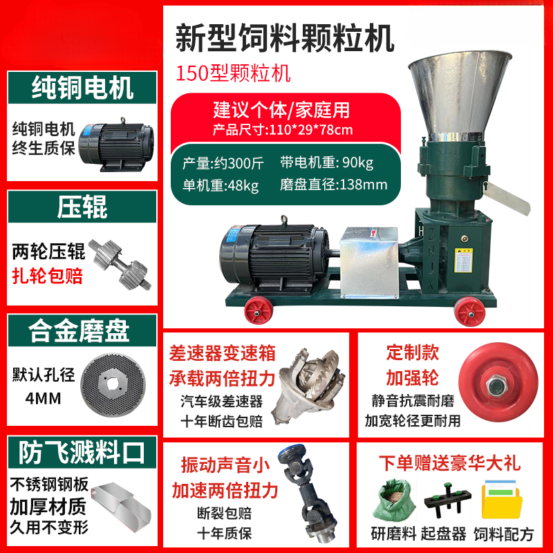 Pressing wheel feed pellet machine for pigs and small poultry 220V corn stalks manufacturing