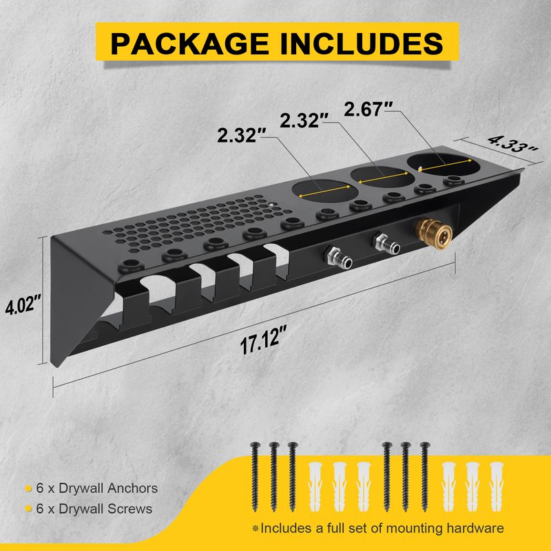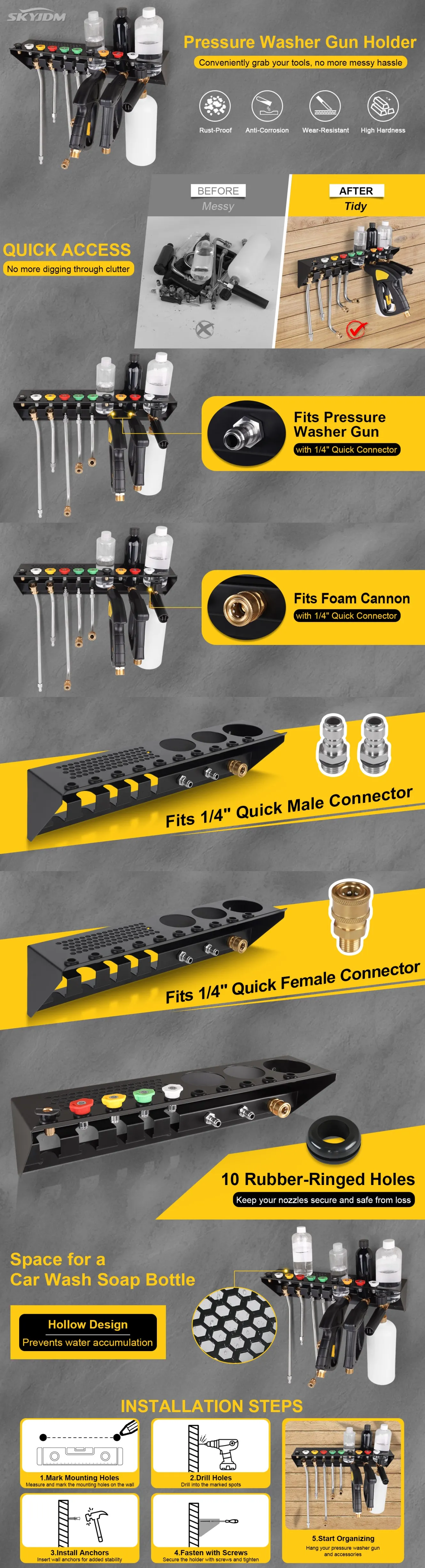Pressure Washer Gun & Foam Cannon Holder with 1/4 Inch Quick Connector, Wall-Mounted Nozzle Tip & Extension Wand Organizer