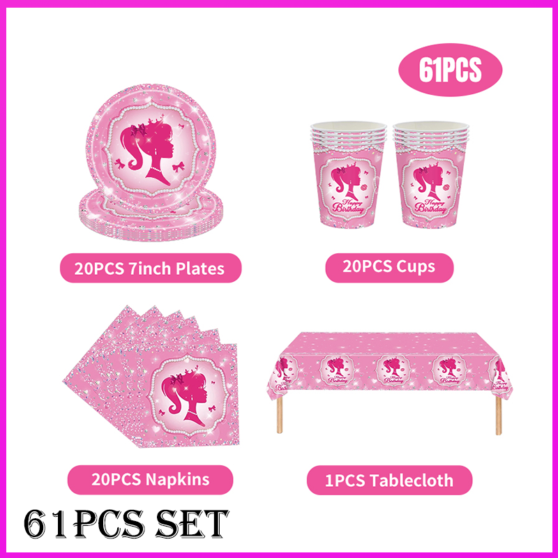 Princess Birthday Decoration Pink Theme Tableware Party Balloons For Girls Birthday Cup Plates Kit Banner Backdrop Deco Supplies