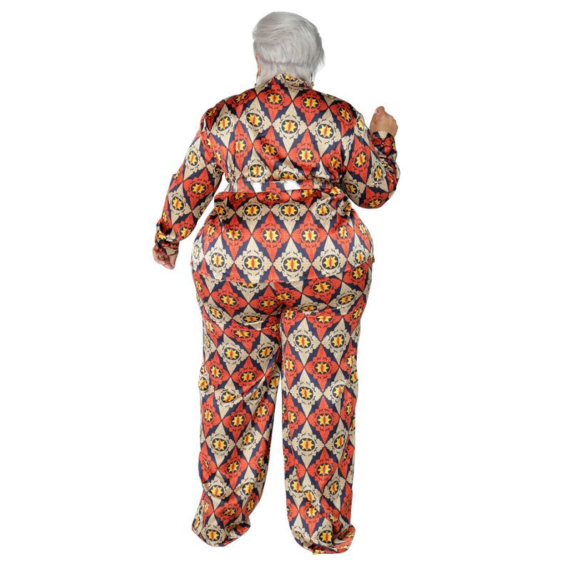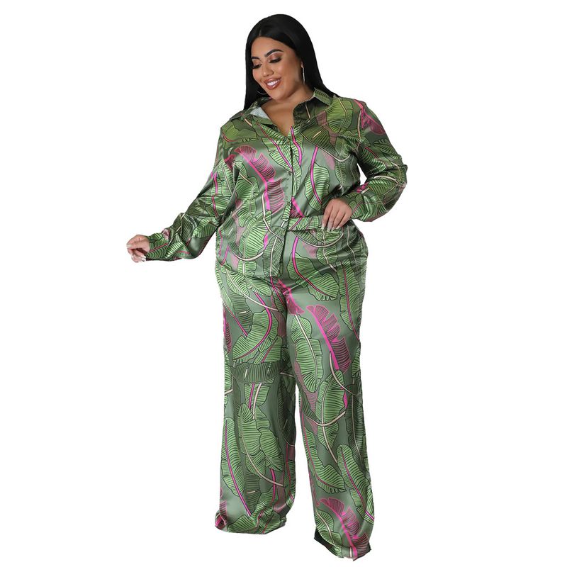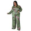 Printed Cardigan Long Sleeve Loose Trousers Fashion Printed Casual Suit Women Green XL
