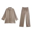 Printed Casual Straight Trousers Loose Long Sleeve Shirt Fashionable Clothes Brown S