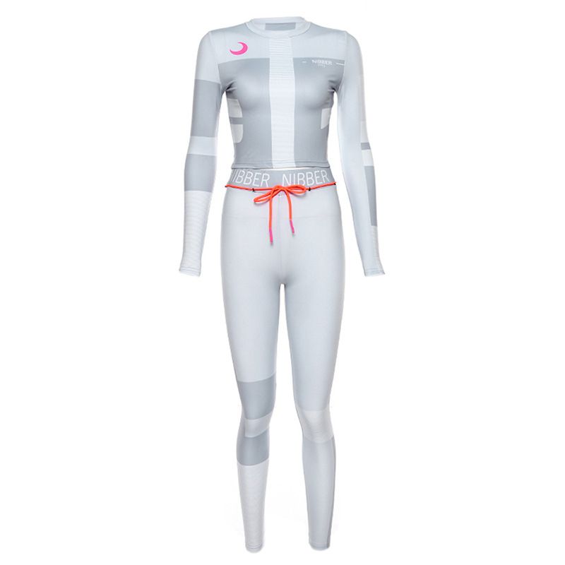 Printed color sports fitness suit Grey S