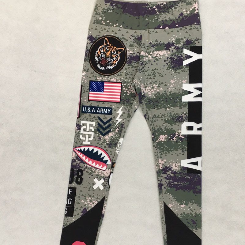Printed Hip-Fitting Running Fitness Pants ArmyGreen L