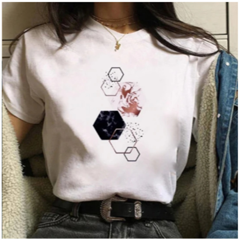 Printed Ladies Round Neck Short Sleeve Loose Casual T-shirt G XL