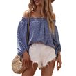 Printed Long Sleeve Shirt Slip Neck Loose Top Blue 2XL