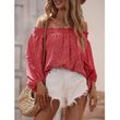 Printed Long Sleeve Shirt Slip Neck Loose Top Red 2XL