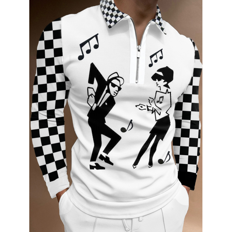 Printed Long-sleeved Polo Shirt Zipper Men's T-shirt C L