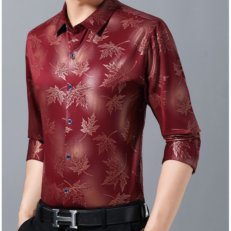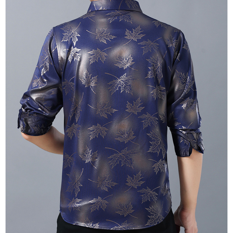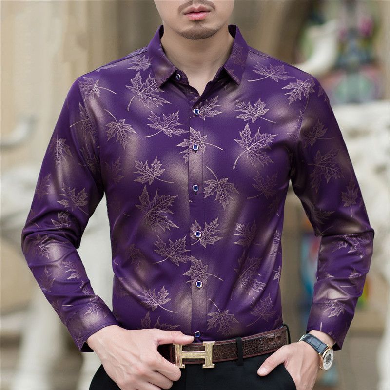 Printed Men's Casual Long Sleeve Shirt Purple XL