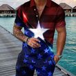 Printed Polo Shirt Suit Summer Fashion Beige 2XL