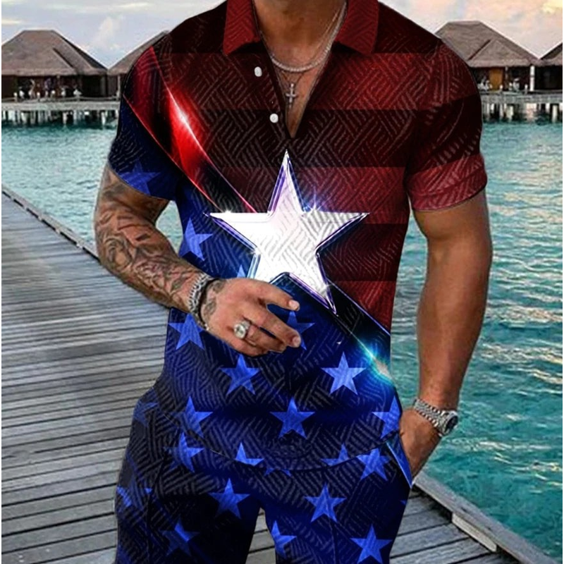 Printed Polo Shirt Suit Summer Fashion Beige S