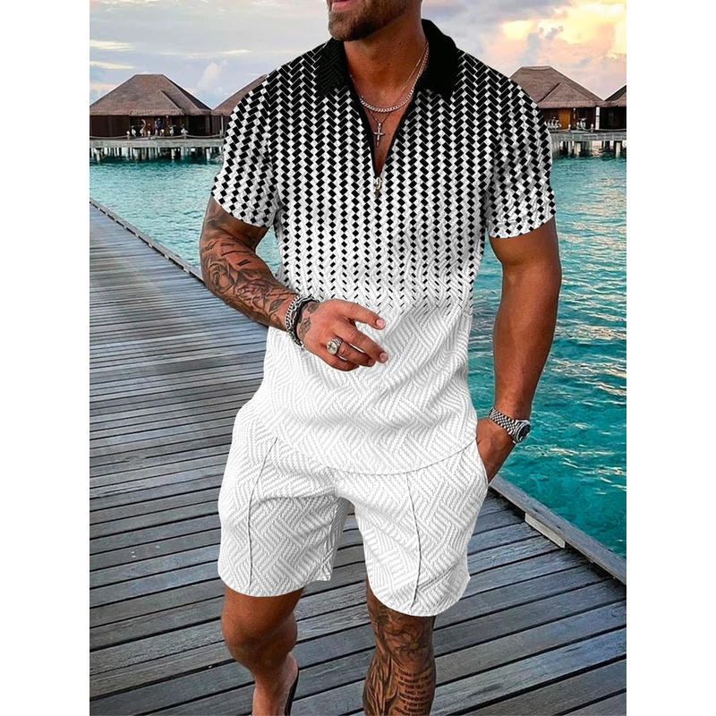 Printed Polo Shirt Suit Summer Fashion Red 4XL