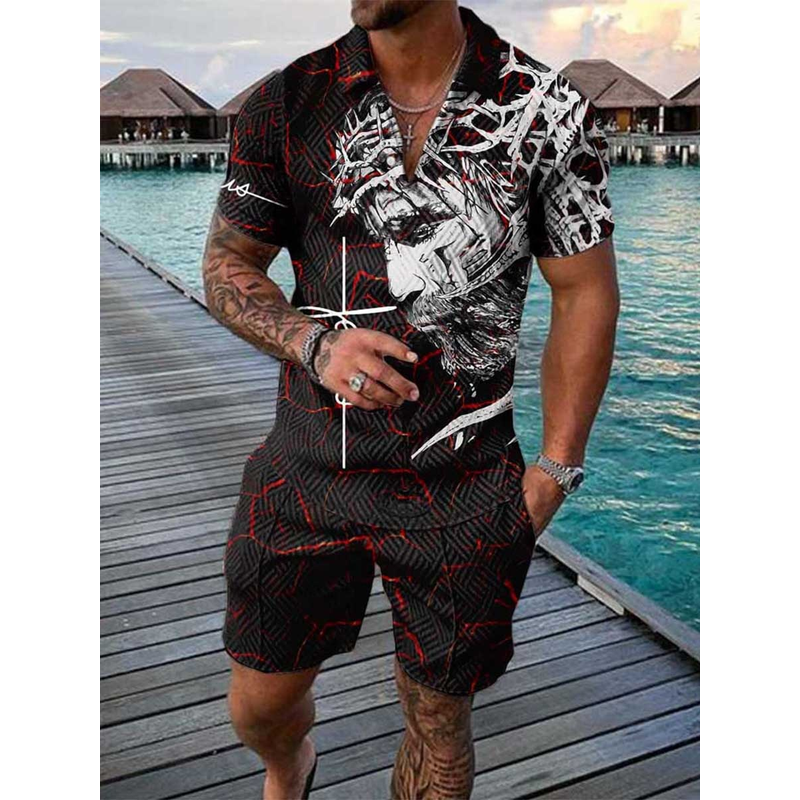 Printed Polo Shirt Suit Summer Fashion White XL