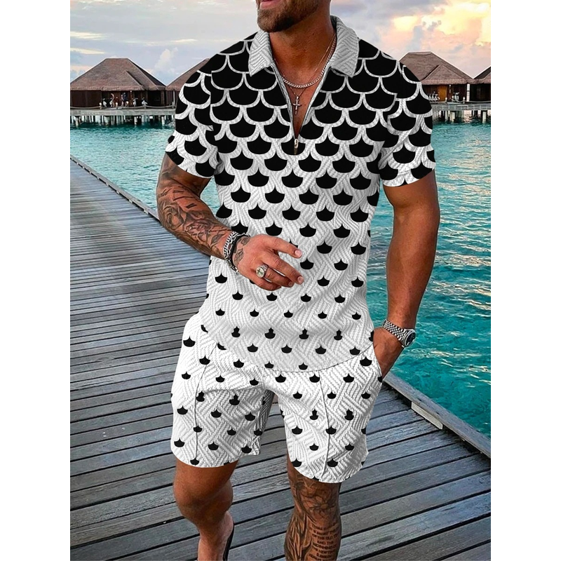 Printed Polo Shirt Suit Summer Fashion Yellow 5XL