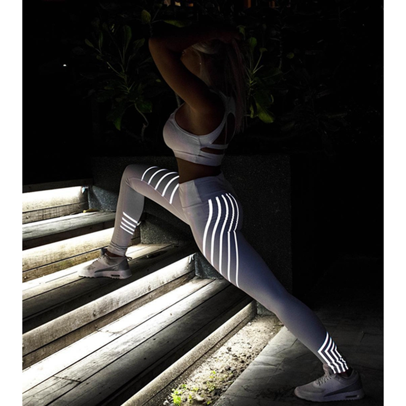 Printed Reflective Sport Yoga Pants Women Fitness Gym Leggings Running Compression Tights Quick Dry Sport Clothes Trousers large white