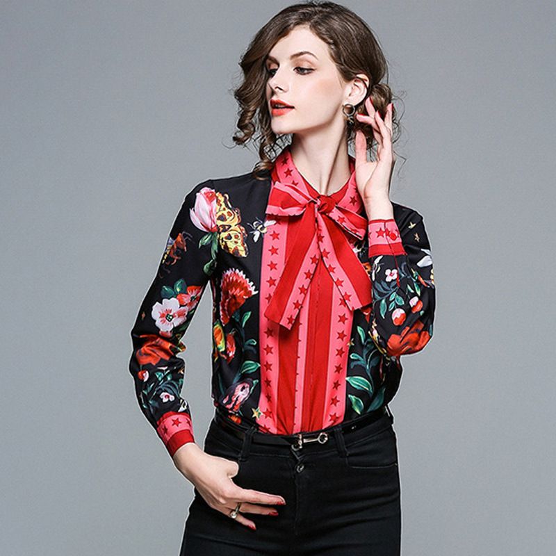Printed Slim Long Sleeved Versatile Lapel Shirt Red S