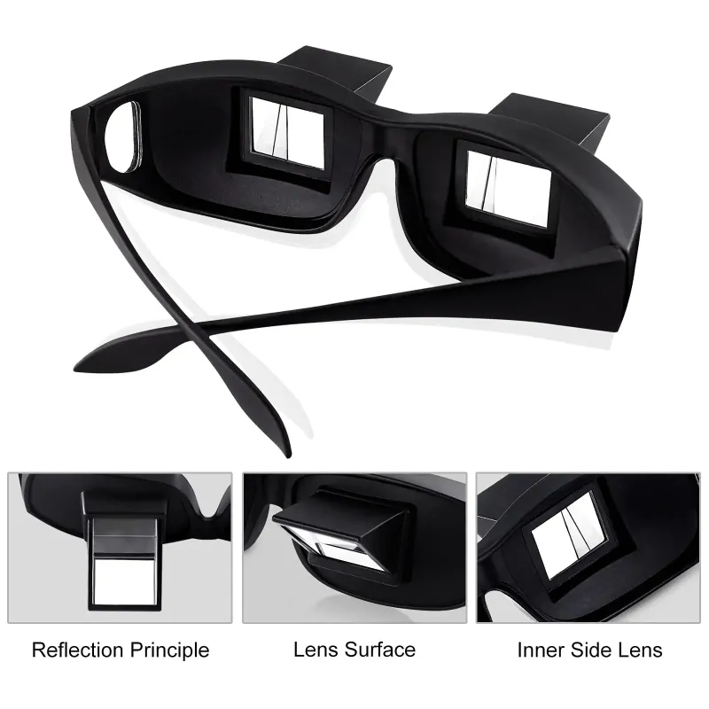 Prism Lazy Glasses HD, Bed Reading Refraction Eyewear, Hands-Free for Phone/TV, Universal Reversible Lenses, Anti-Eye Strain