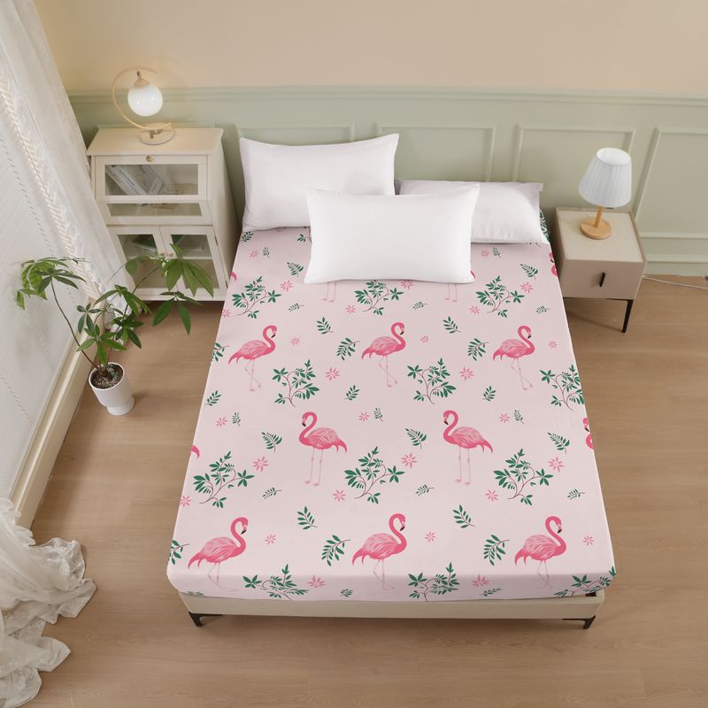 Plant and Bird Pattern Printed Fitted Sheet, 1 Piece Mattress Cover (Pillowcase Not Included), Polyester Fiber Three-Dimensional Dirt-Resistant Mattress Protector, Flamingo Floral Polyester Five-Sided Wrap-Around Fitted Sheet, Multiple Colors Available, S