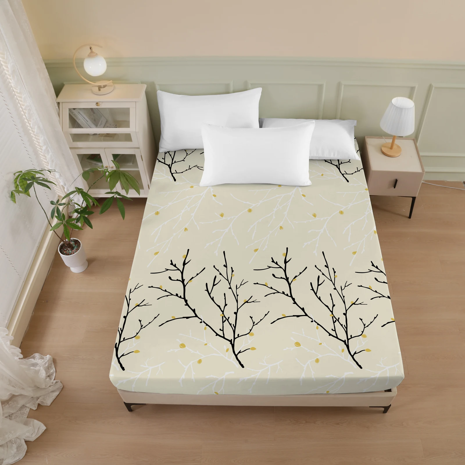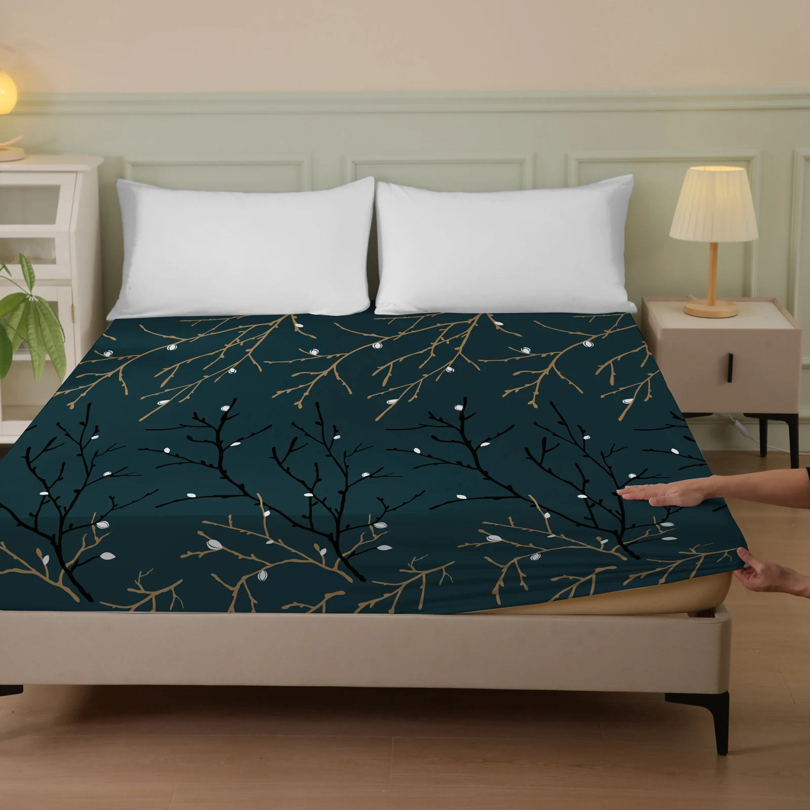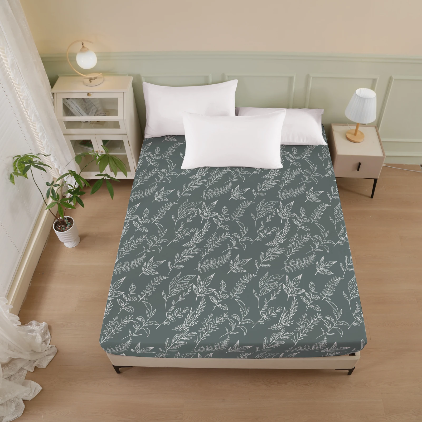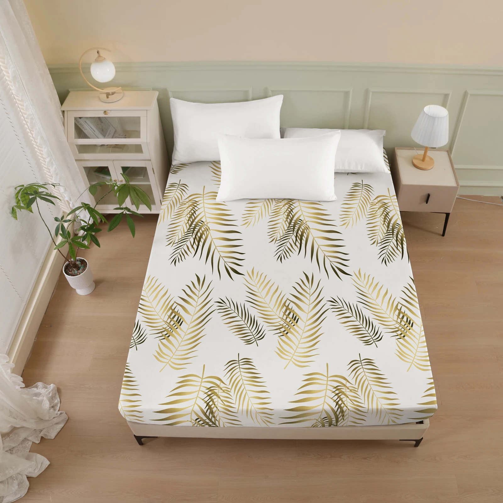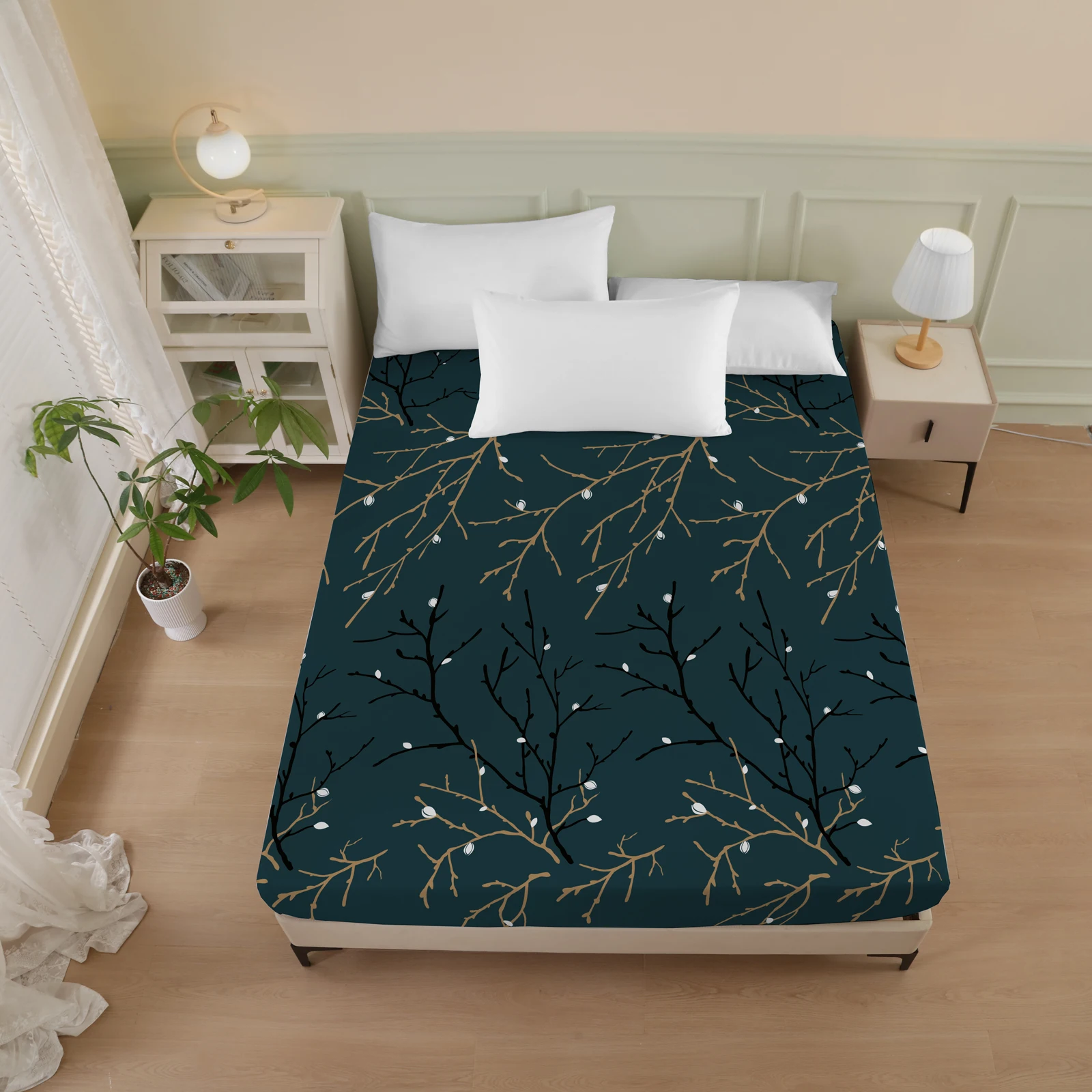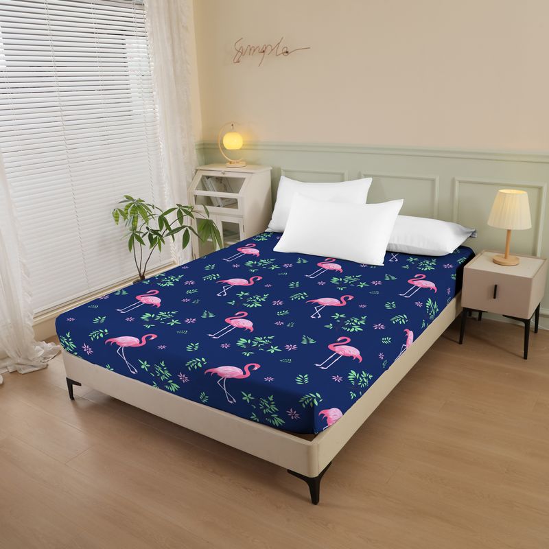 Plant and Bird Pattern Printed Fitted Sheet, 1 Piece Mattress Cover (Pillowcase Not Included), Polyester Fiber Three-Dimensional Dirt-Resistant Mattress Protector, Flamingo Floral Polyester Five-Sided Wrap-Around Fitted Sheet, Multiple Colors Available, S