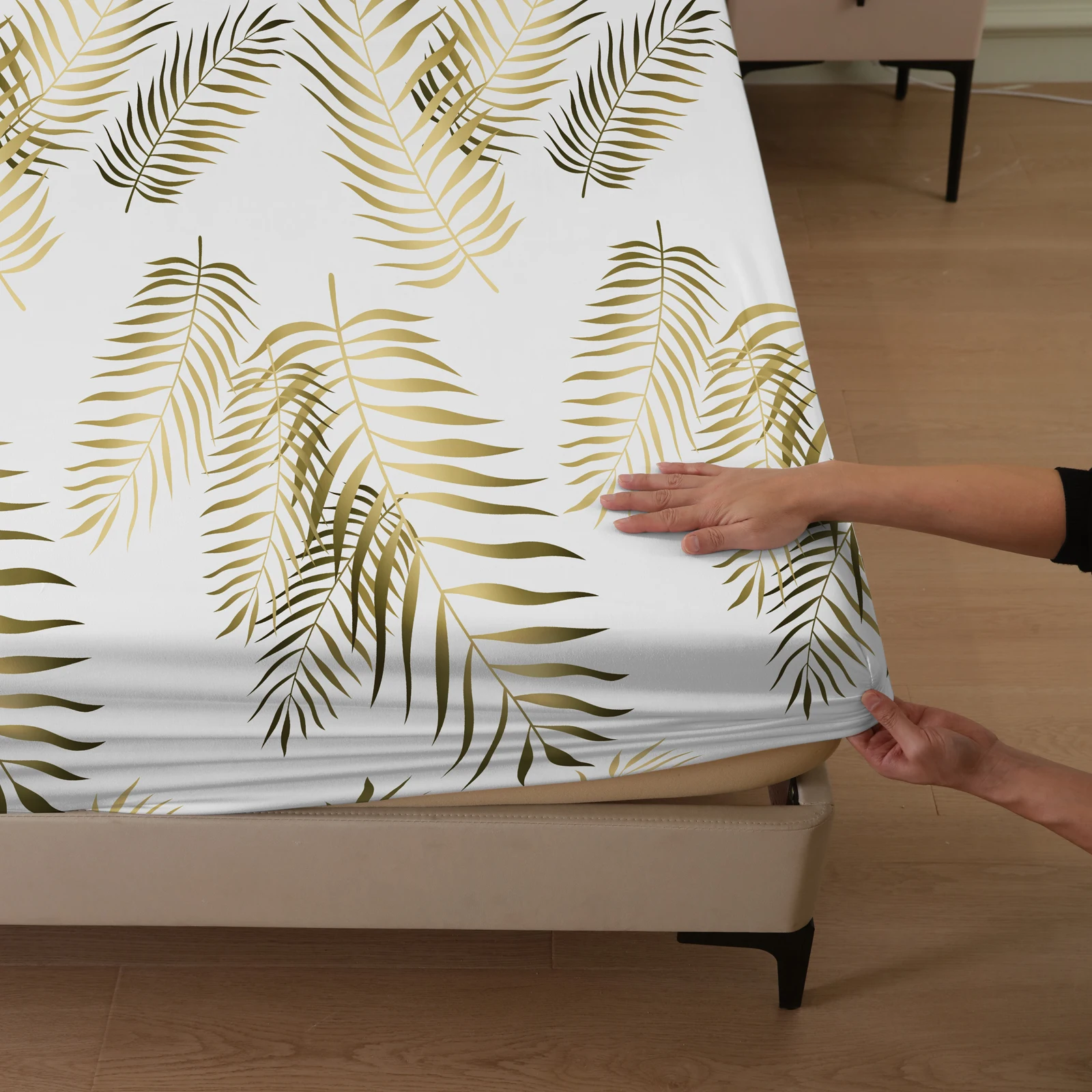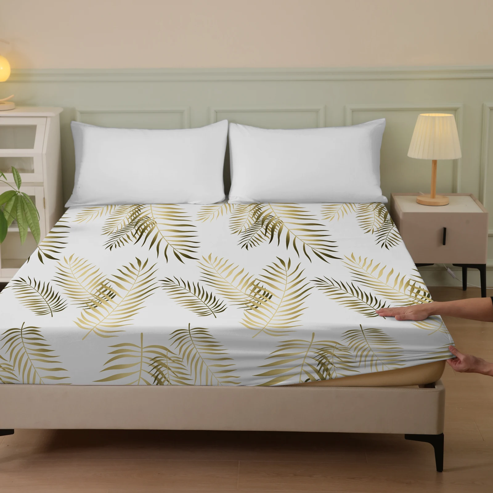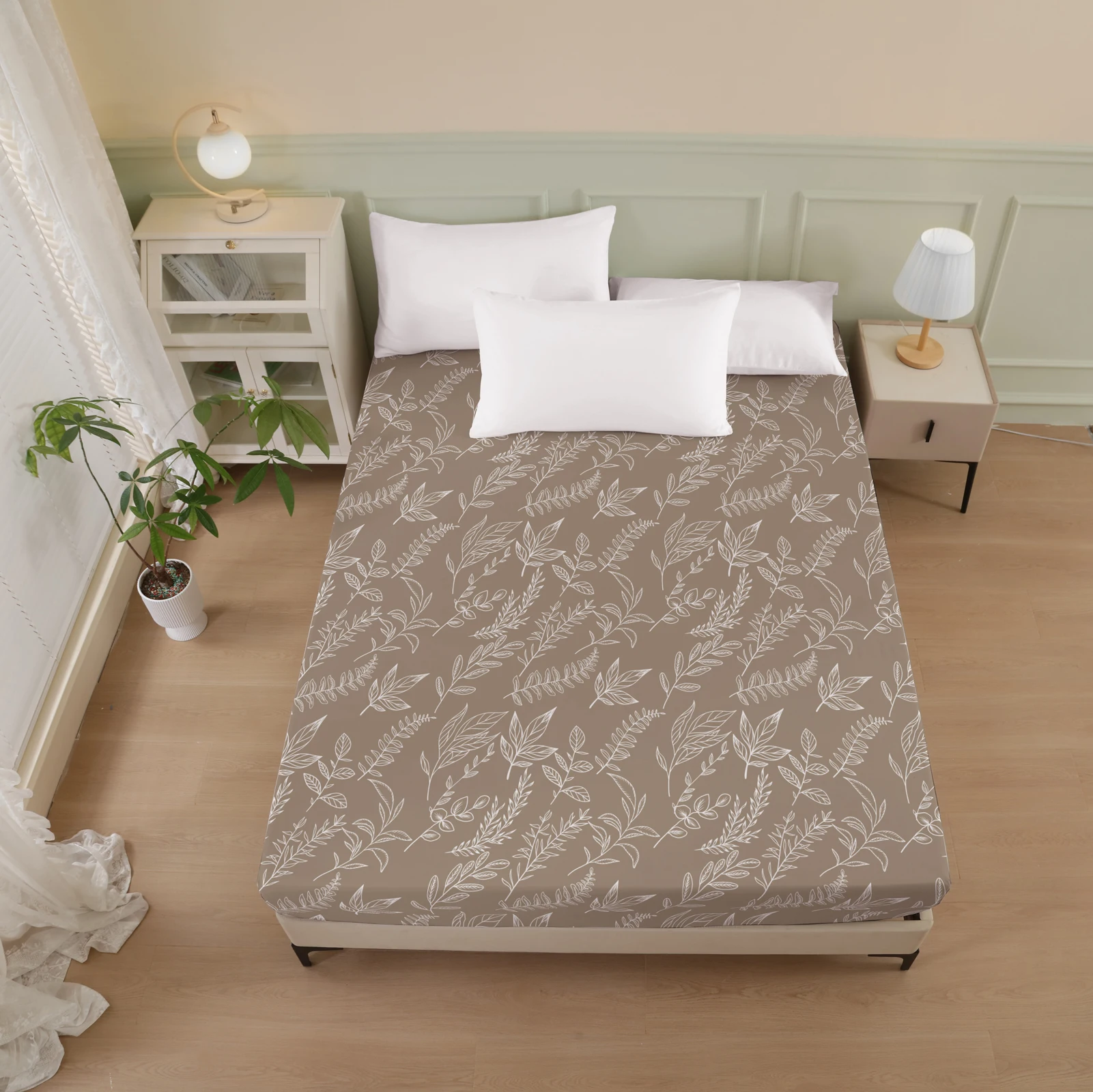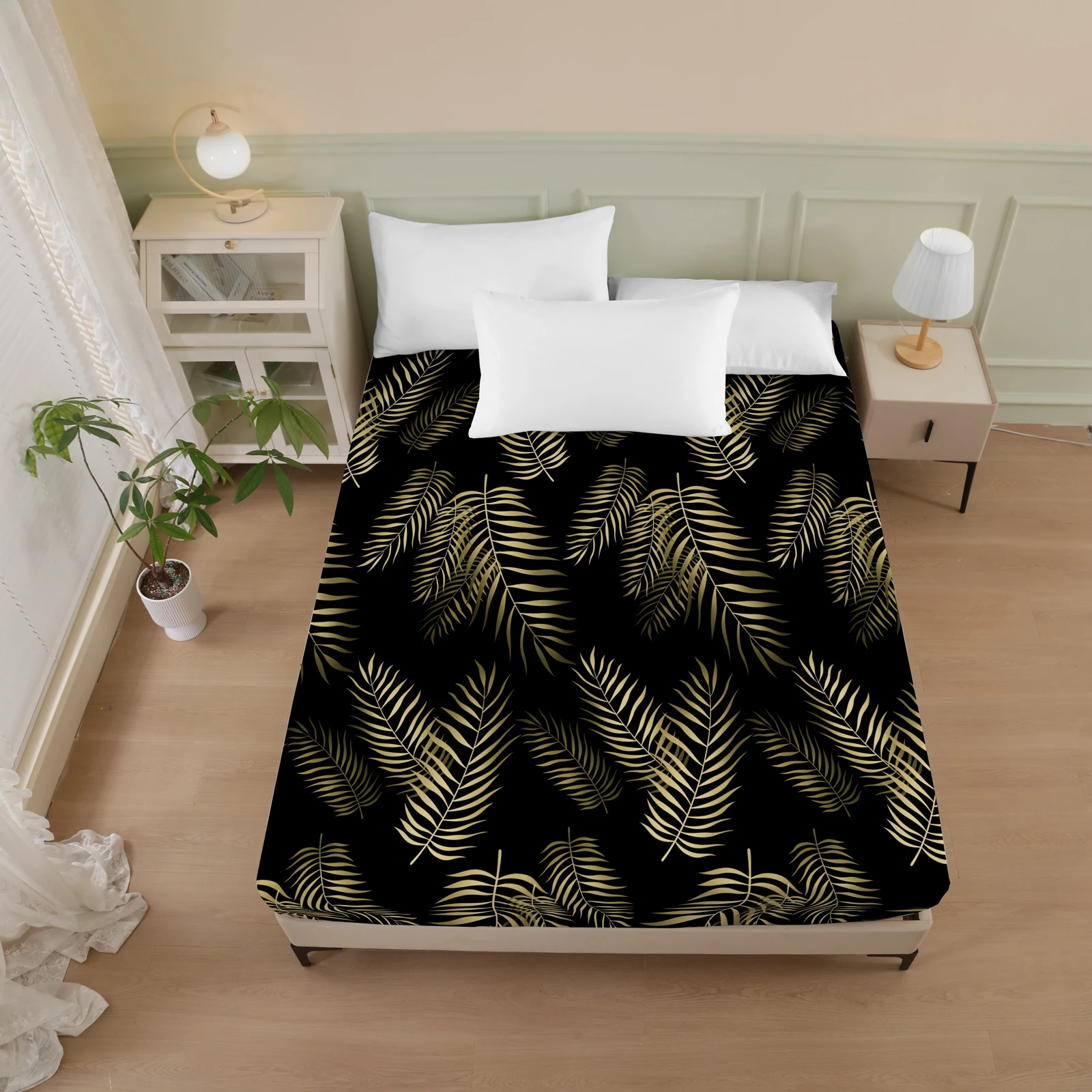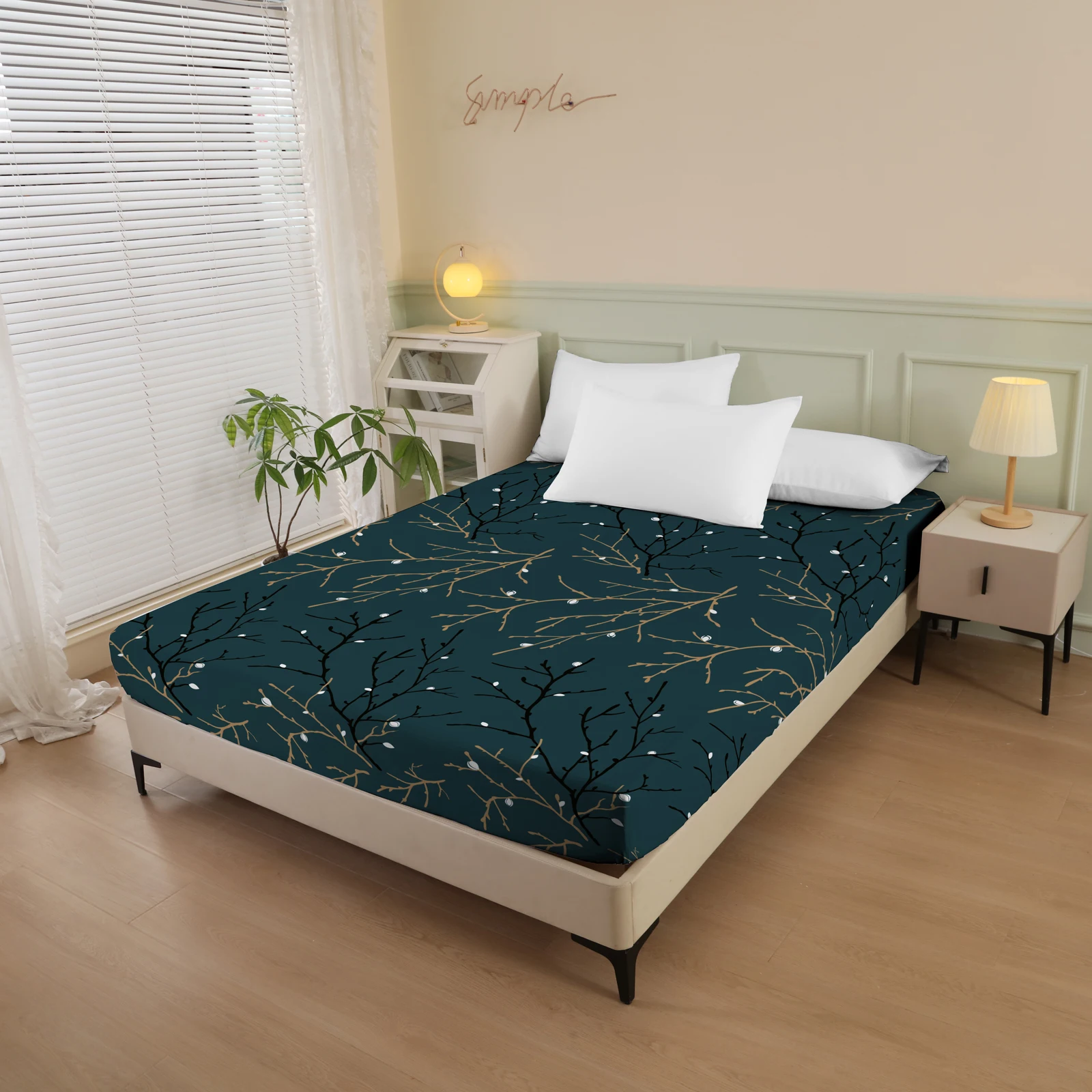 Plant and Bird Pattern Printed Fitted Sheet, 1 Piece Mattress Cover (Pillowcase Not Included), Polyester Fiber Three-Dimensional Dirt-Resistant Mattress Protector, Flamingo Floral Polyester Five-Sided Wrap-Around Fitted Sheet, Multiple Colors Available, S