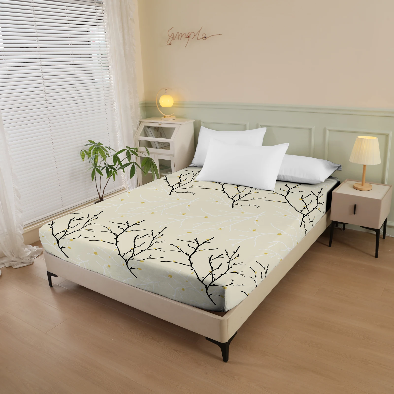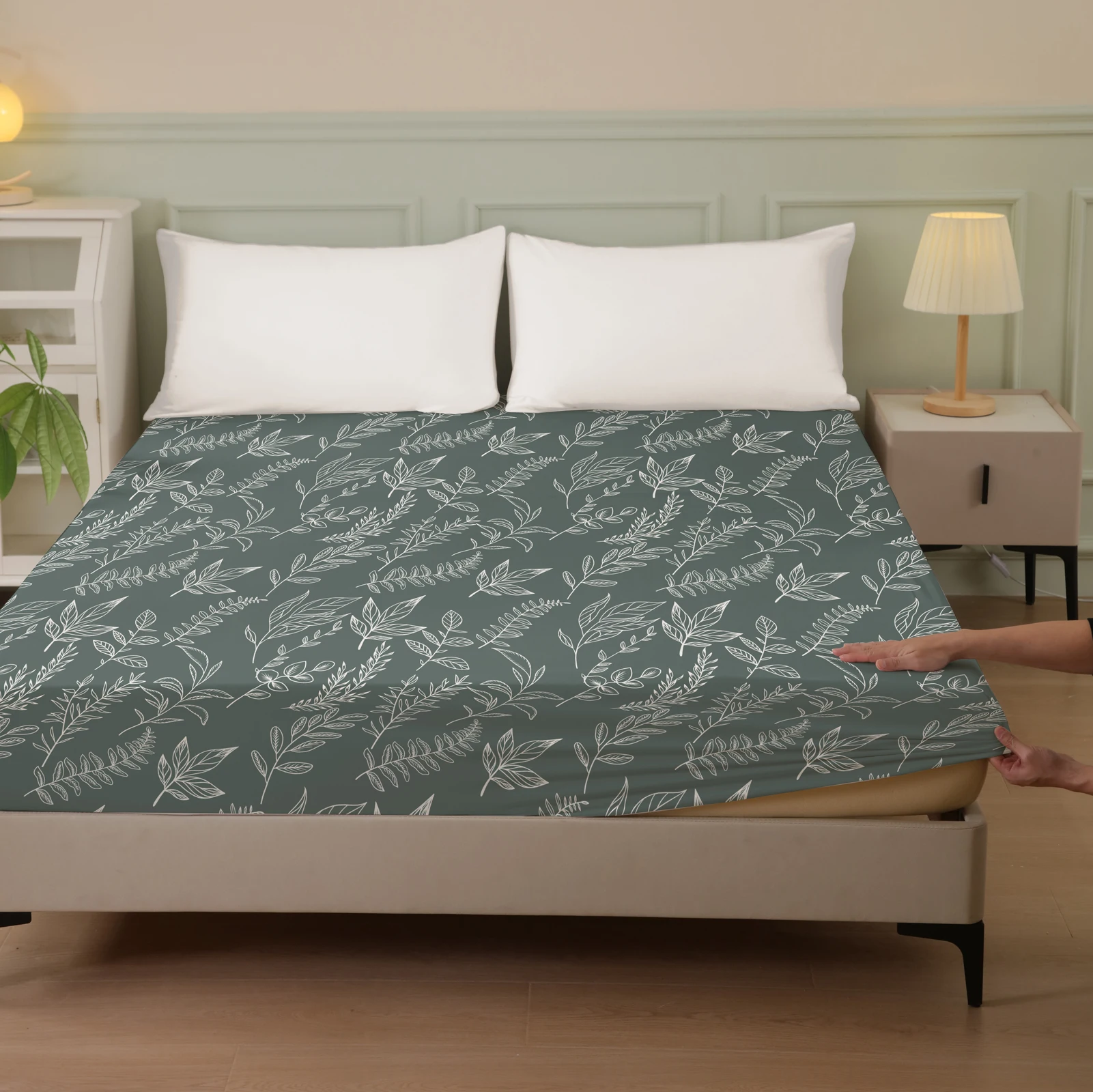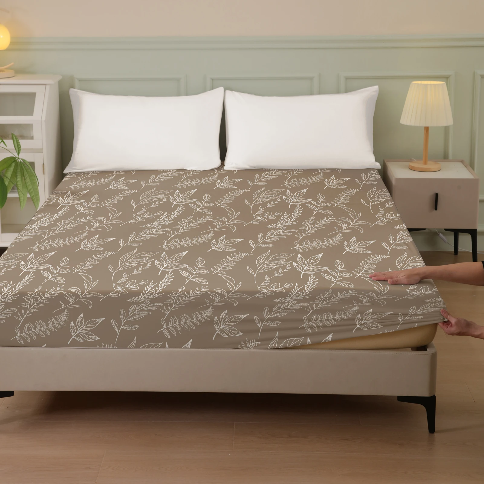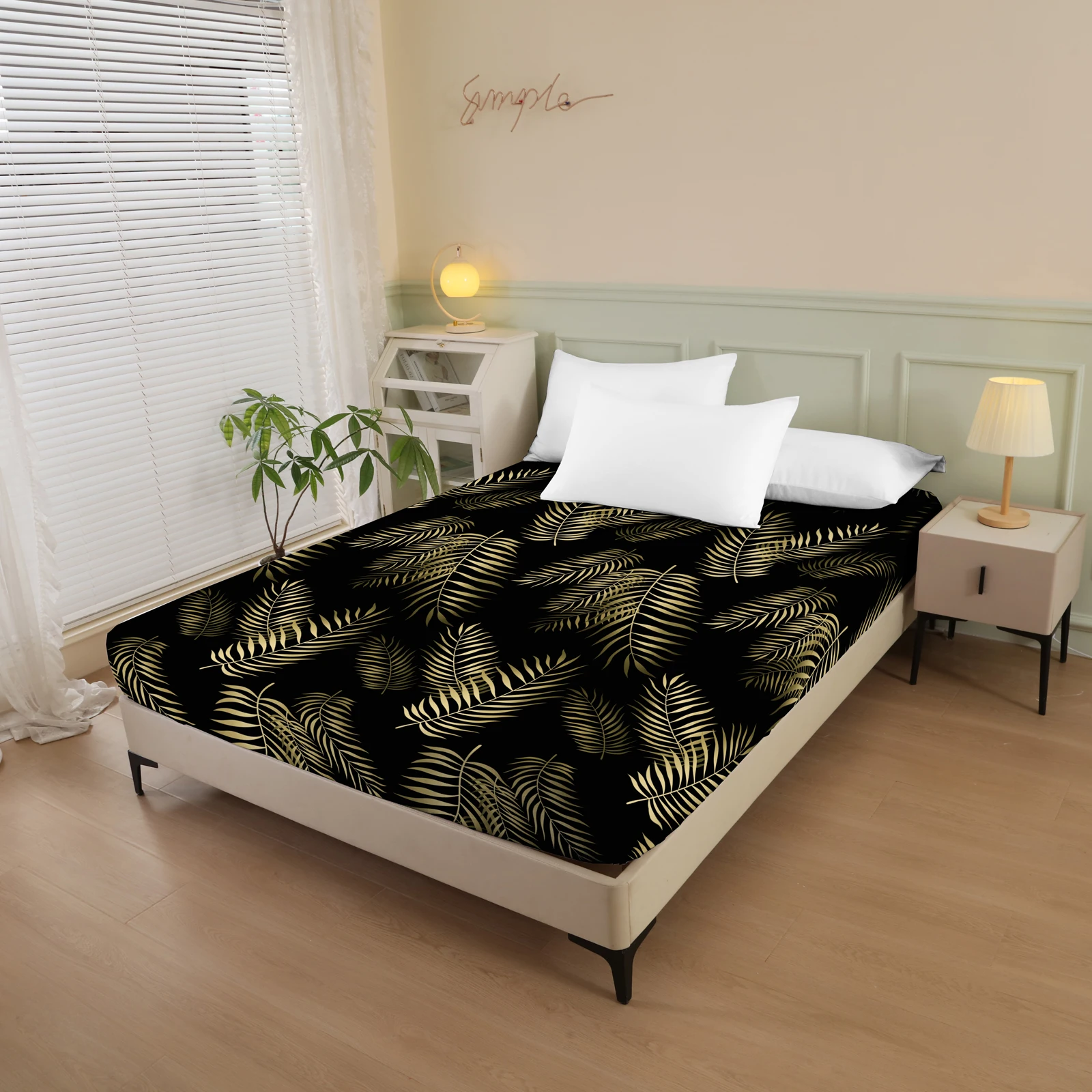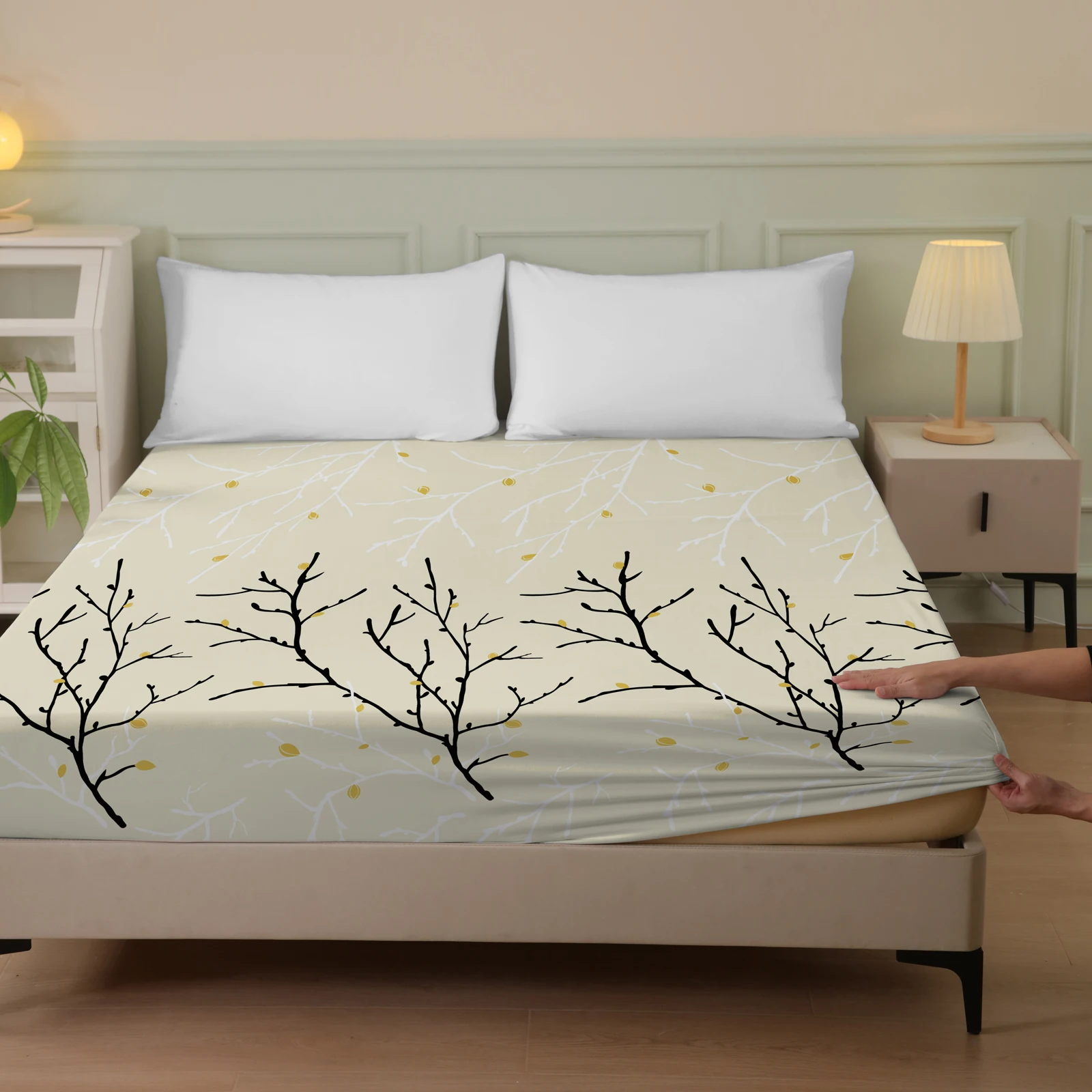 Plant and Bird Pattern Printed Fitted Sheet, 1 Piece Mattress Cover (Pillowcase Not Included), Polyester Fiber Three-Dimensional Dirt-Resistant Mattress Protector, Flamingo Floral Polyester Five-Sided Wrap-Around Fitted Sheet, Multiple Colors Available, S