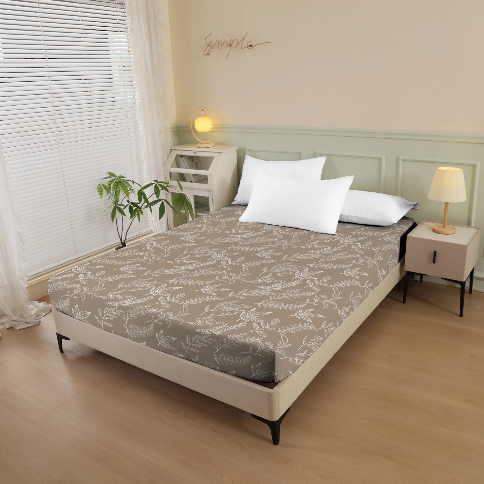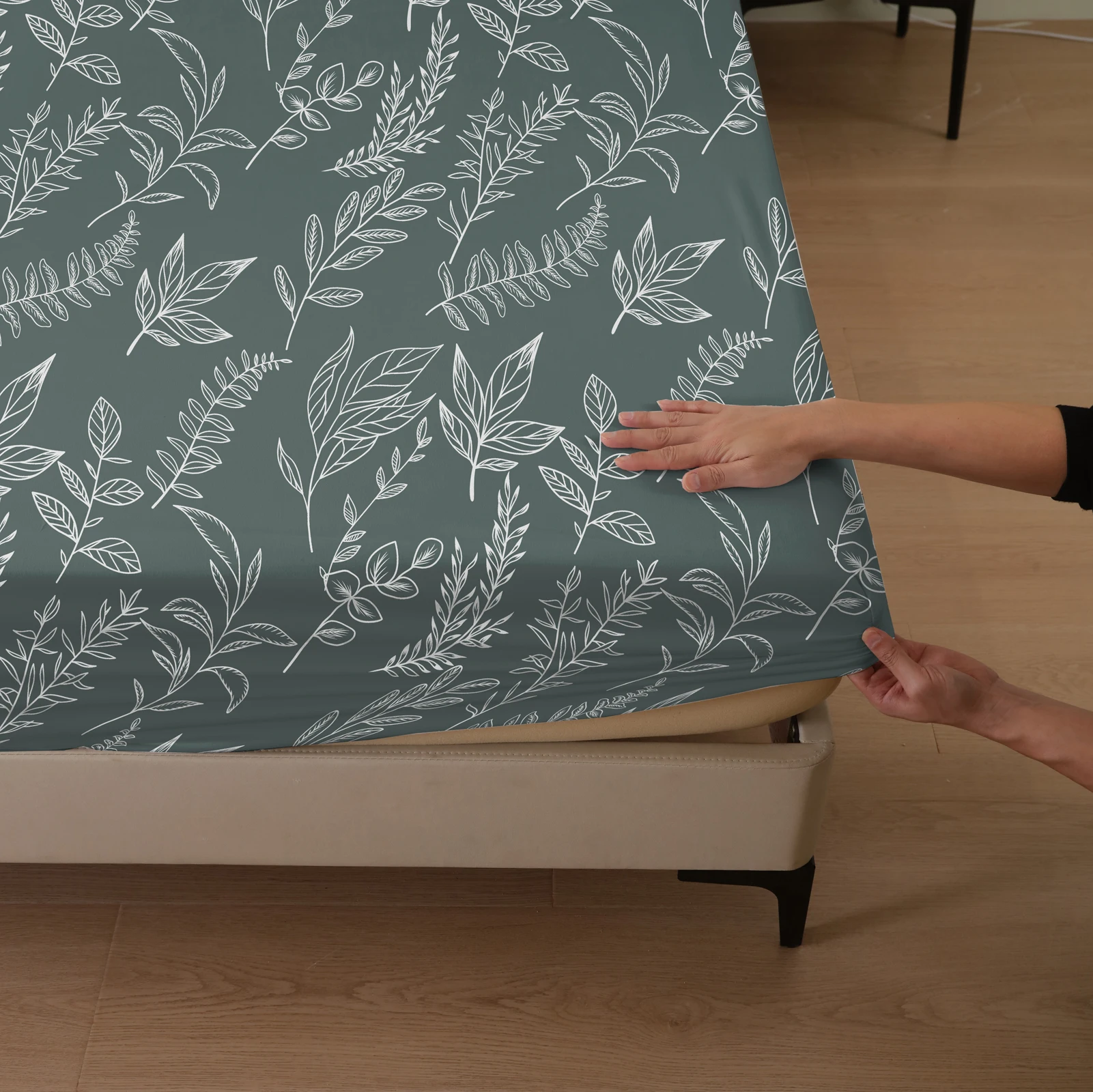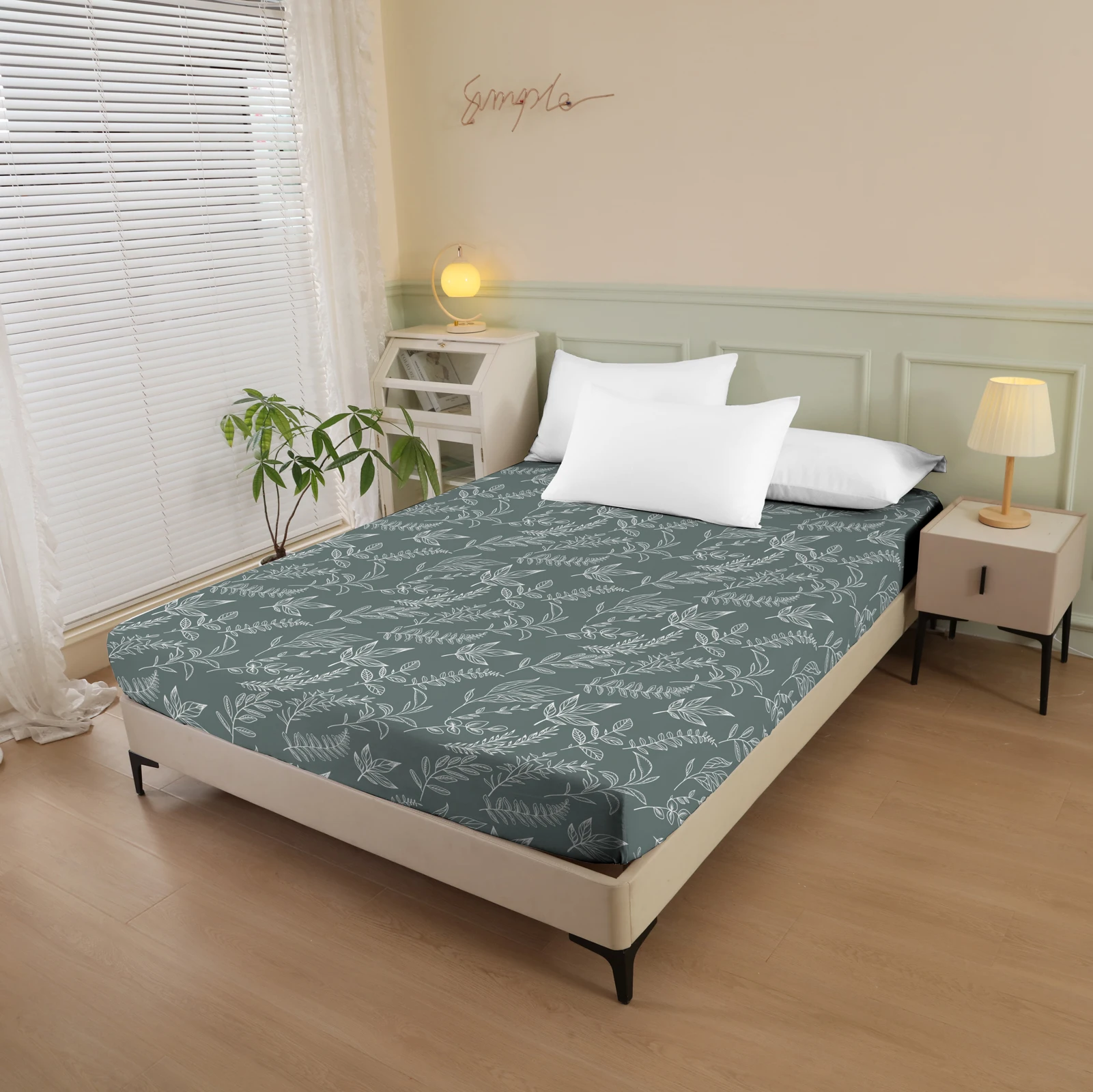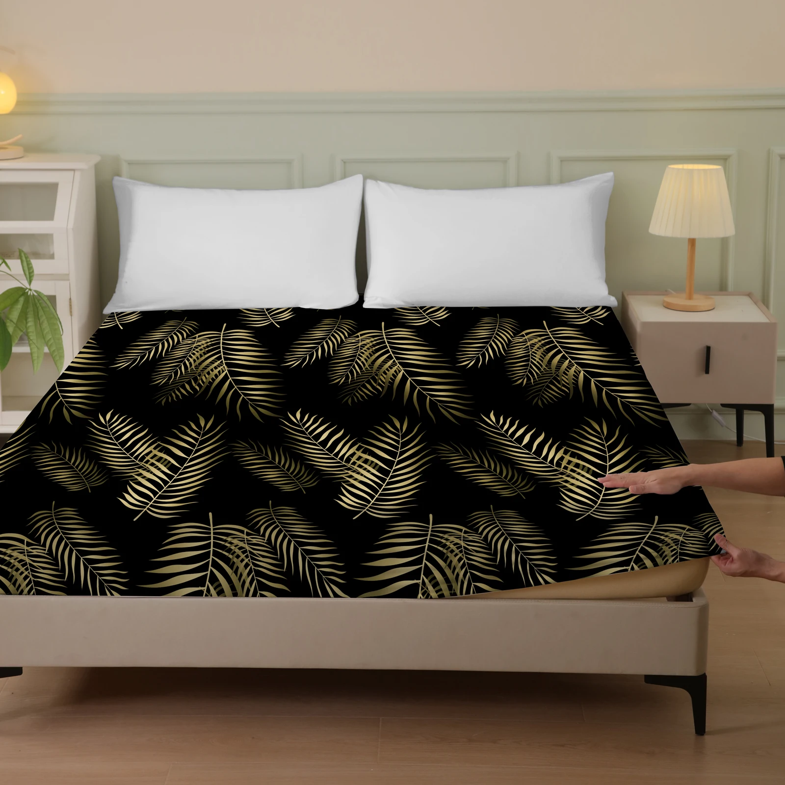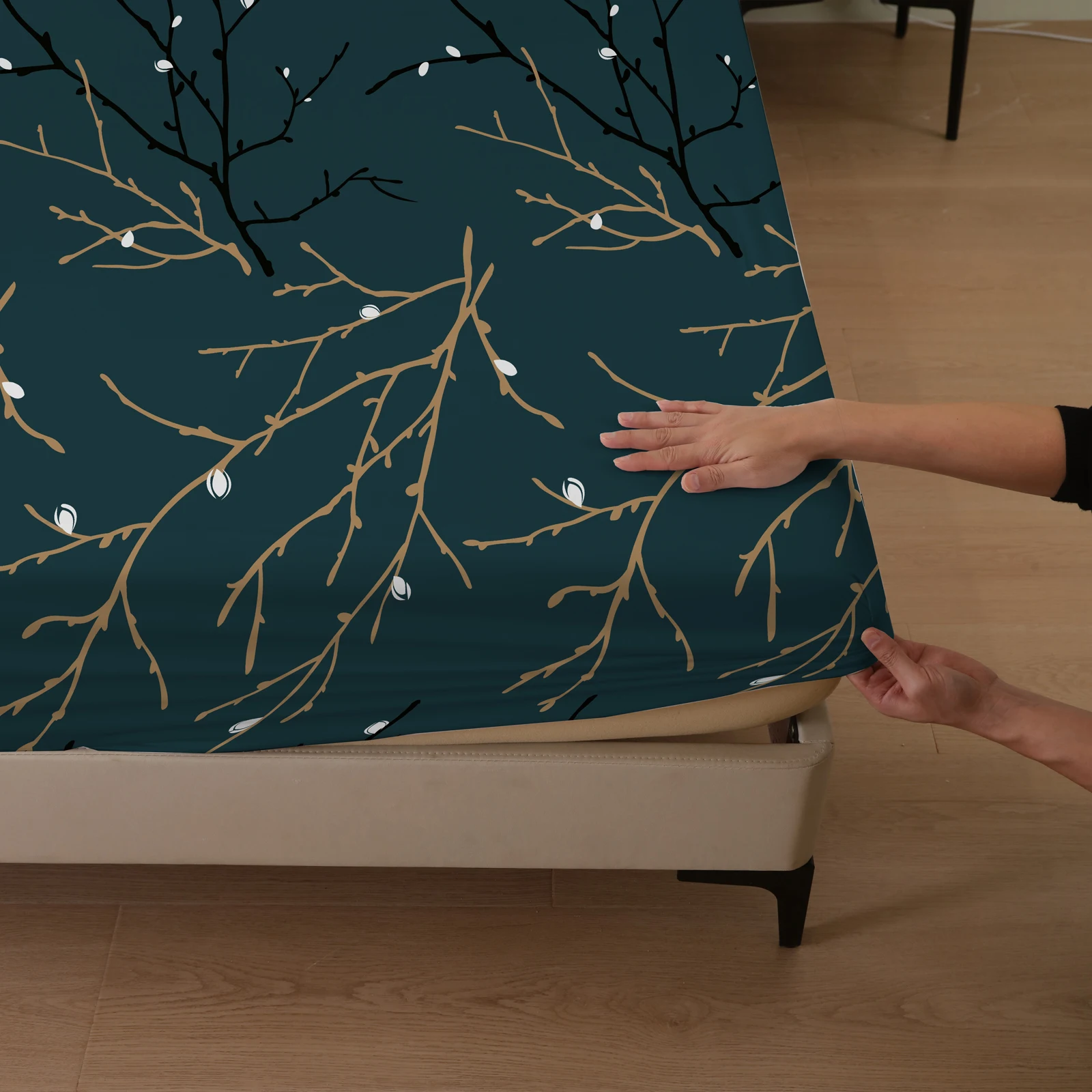 Plant and Bird Pattern Printed Fitted Sheet, 1 Piece Mattress Cover (Pillowcase Not Included), Polyester Fiber Three-Dimensional Dirt-Resistant Mattress Protector, Flamingo Floral Polyester Five-Sided Wrap-Around Fitted Sheet, Multiple Colors Available, S