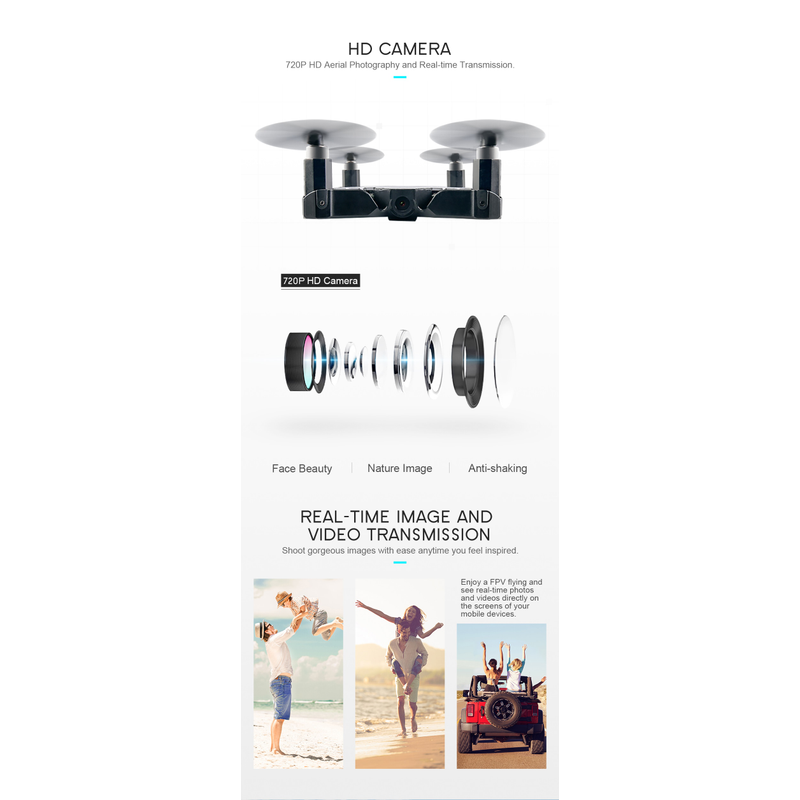 Provides a stable flight with the function of altitude maintenance mode Let your photo look more beautiful with the beauty mode of aerial photography.