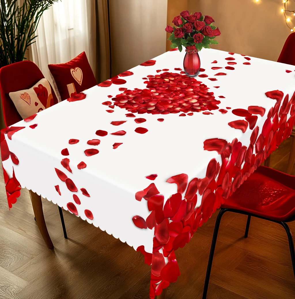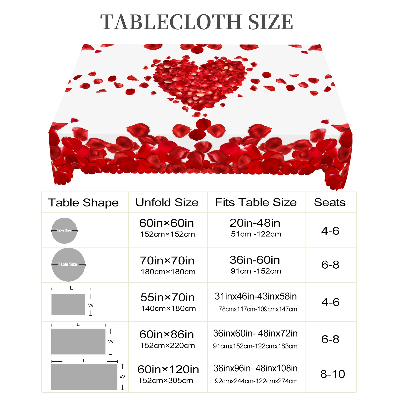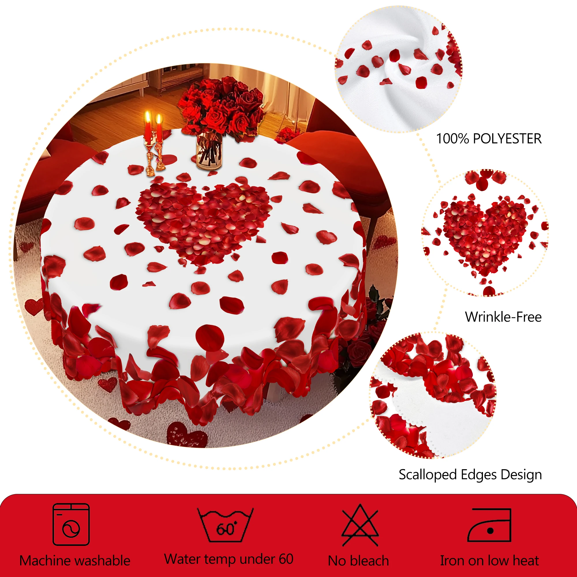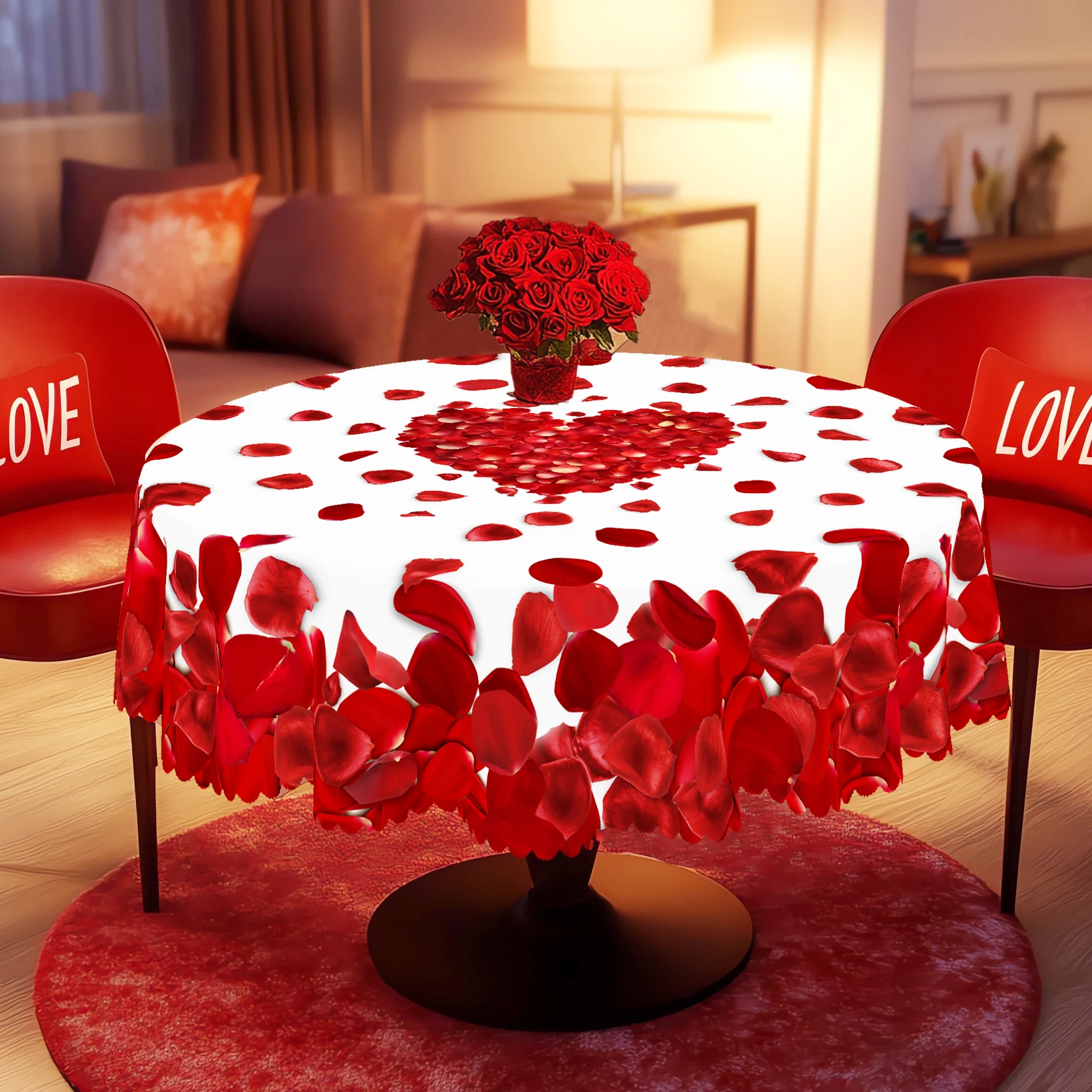 1 Piece Valentine's Day Round Tablecloth, 5 Sizes Available, Romantic Rose Petals Heart-Shaped Printed Square Tablecloth, Edge Embossing Process, Wedding Decoration, Valentine's Day Spring Garden Tablecloth Decoration, Tablecloth for Daily Home Kitchen, T