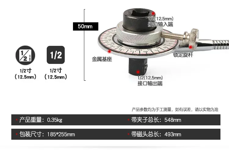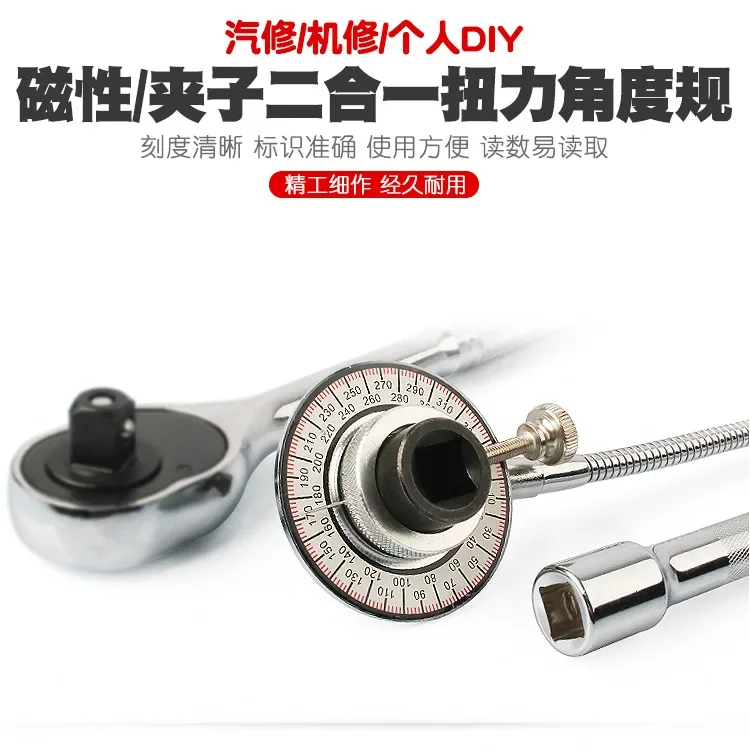 Professional 1/2" Drive Torque Angle Gauge 360° Adjustable Gauge Wrench Clip Set Graduator Measure Tool Wrench Accessories