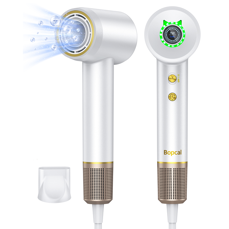 1. ๐Ÿ๐Ÿ๐ŸŽ๐ŸŽ๐ŸŽ๐ŸŽ๐‘๐๐Œ ๐‡๐ข๐ ๐ก ๐’๐ฉ๐ž๐ž๐ ๐Ÿ๐จ๐ซ ๐Ÿ“๐— ๐…๐š๐ฌ๐ญ๐ž๐ซ ๐๐ฅ๐จ๐ฐ๐๐ซ๐ฒ: Bopcal hair dryer is equipped with an efficient 110000RPM and advanced internal aerodynamics that ensure strong and steady airflow. Coupled with the constant heat, it drastically cuts blowdry time by increasing wind speed removes surface moisture from hair . Faster drying equates to time-saving and less damage to your hair.