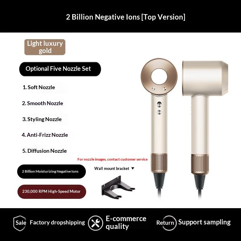 Professional 5 in 1 Hair Dryer with Hot Cold Air Bladeless Negative Ion High Speed Drying Lightweight for Home and Travel Use