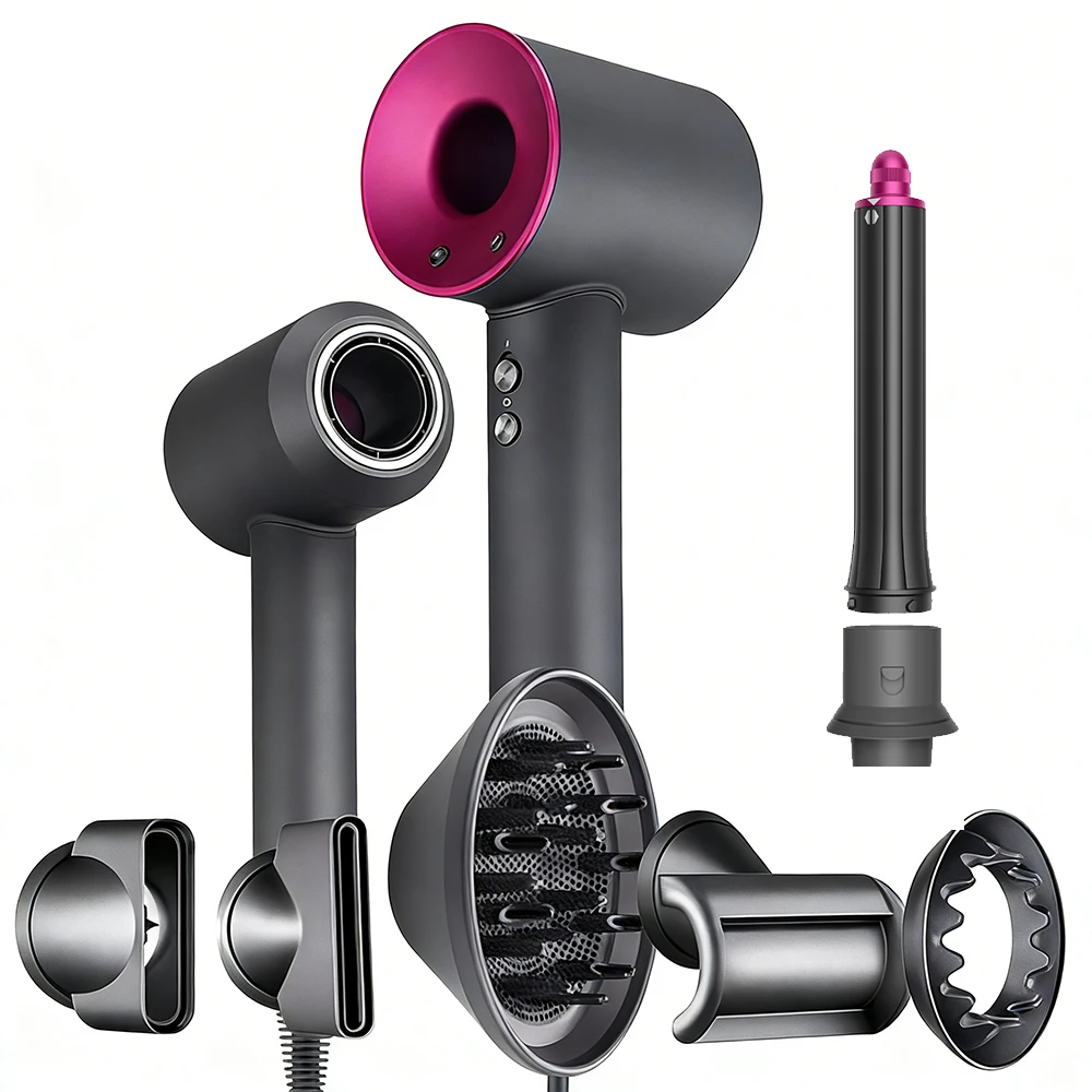 Professional 6 in 1 Hair Dryer 110000rpm High Speed Negative Ions Blow Dryer with 30mm Air Wrap Curlers Salon Hair Styling Tool