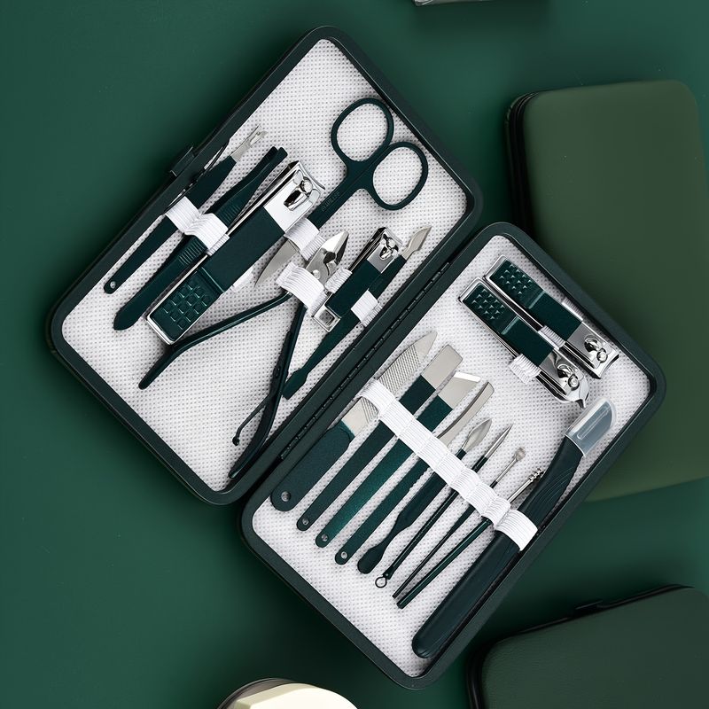 Professional 7-18 Piece Nail Care Kit Stainless Steel Manicure & Pedicure Set with Travel Case for On-the-Go Grooming
