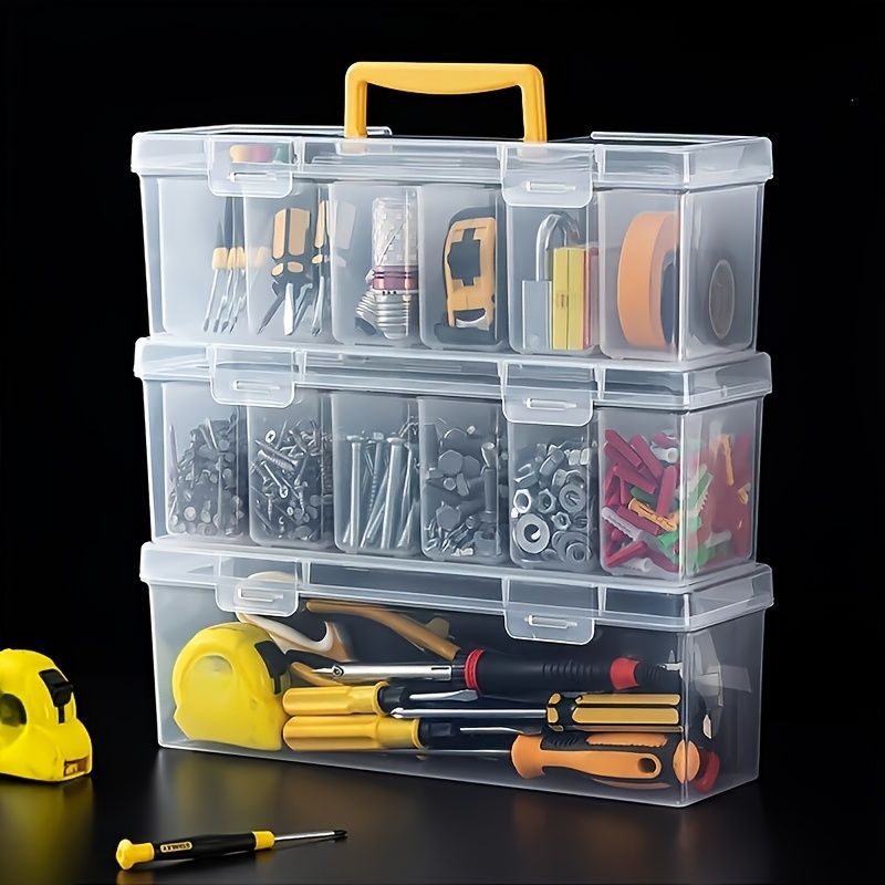 Professional 7-Piece Tool Organizer Set,Transparent Parts Storage with Dividers-Portable Case for Screws,Wrenches & DIY Hardware
