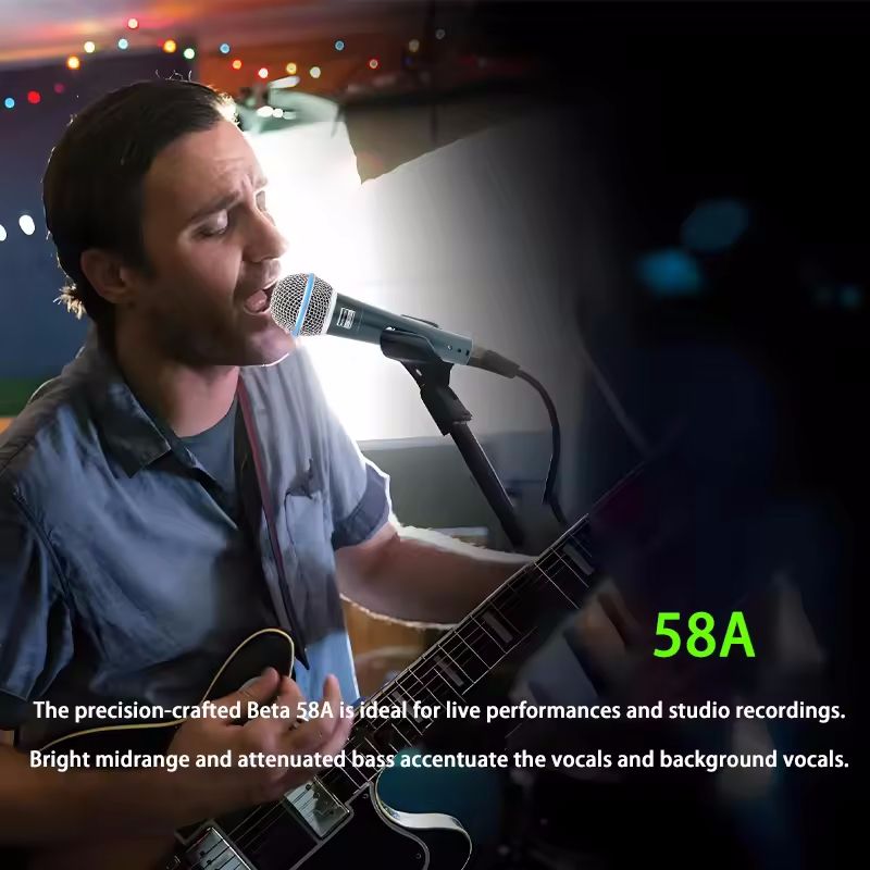 • Supercardioid Dynamic Microphone :The BETA 58A Supercardioid Dynamic Microphone is designed to capture sound from a single direction, reducing background noise and improving audio quality.