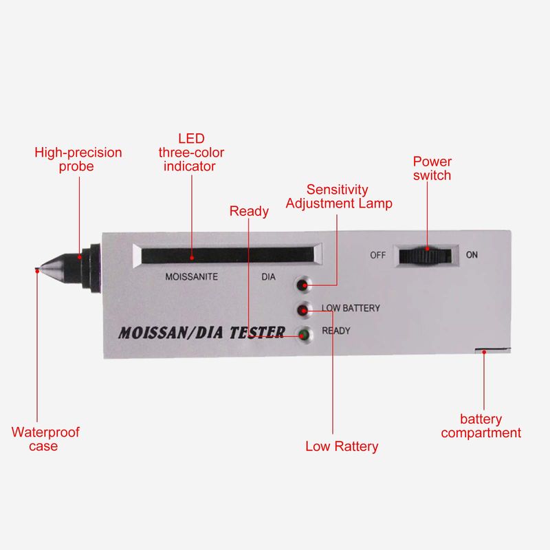 Instantly identifies whether a gemstone is a genuine diamond or moissanite with LED indicator response.