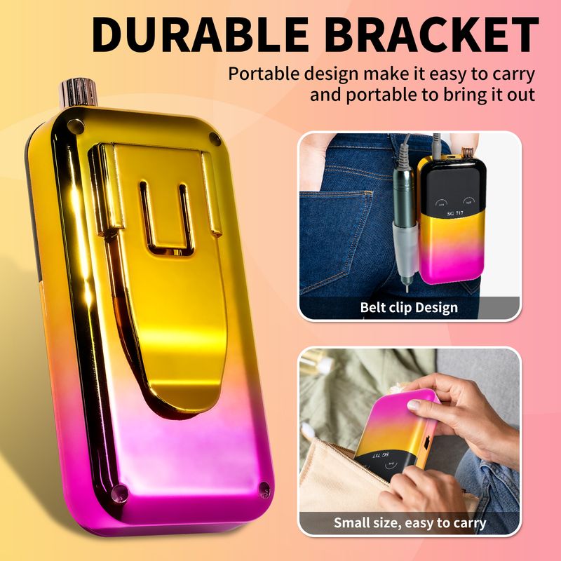 • Portable Nail Drill: This electric nail drill come with a portable Hanging clip design design make it Can be clipped around the waist of pants for use, compact to pack into your bag for carry and enjoy the nail art DIY anywhere anytime.Portable base design, when not using electric nail drill, can be placed on the base for upright and atmospheric display.