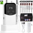 • High Speed up to 45000RPM: Our nail file electric equipped with a powerful upgrade motor bearing, which enables it working smoothly at a high and adjustable speed 0-45000RPM, just rotating the switch to choose the speed you need, easy to use and safe to control. It is an ideal nail drill machine for both professional technicians in-salon or beginners DIY at home.