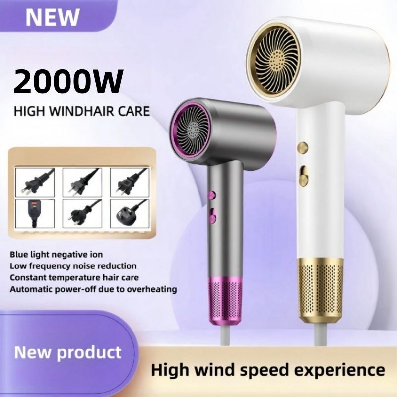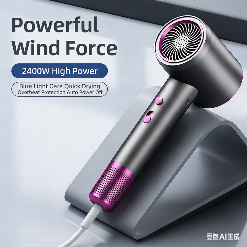 Professional Ionic Hair Dryer with Blue Light, 2400W Strong Wind, Dual Safety Protection, Salon-Grade Blow Dryer for Home Use