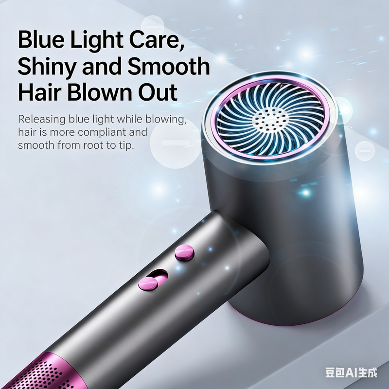 Professional Ionic Hair Dryer with Blue Light, 2400W Strong Wind, Dual Safety Protection, Salon-Grade Blow Dryer for Home Use
