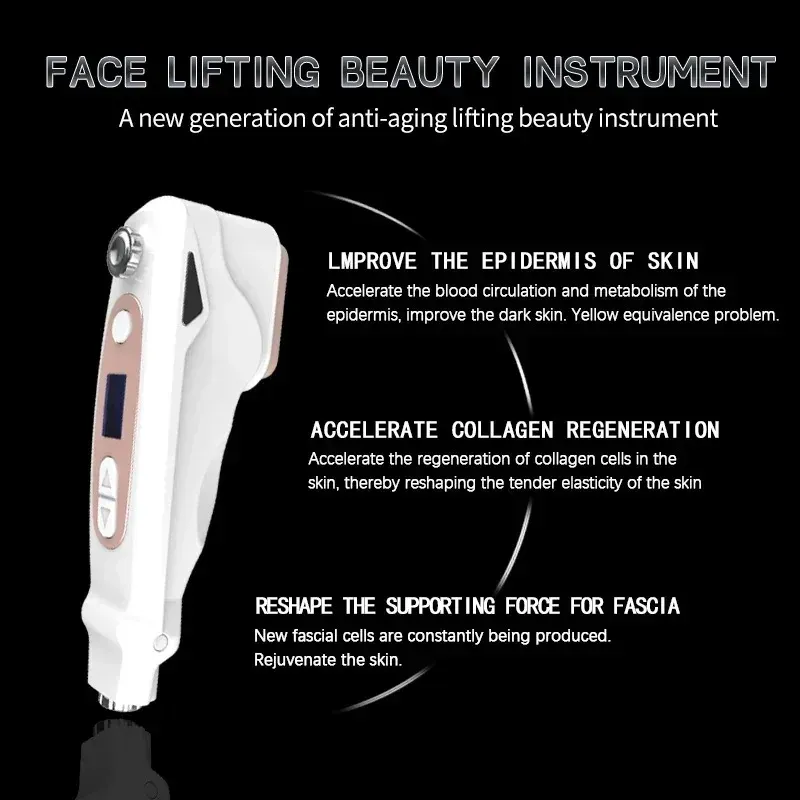 so that the skin tissue create the thermal, and make high-speed friction cells to stimulate collagen. Such heat effect will not hurt the epidermis, because the treatment fast and direct access to the treatment site within 0-0.5 seconds, without touching the surrounding tissue and can be passed directly to the superficial tendon membrane system (SMAS), so it can be done firm skin while pulling the muscle layer, thin face up to the progressive effect
