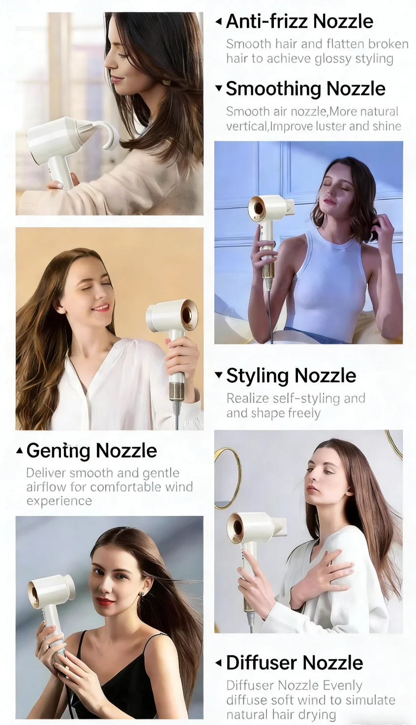 Complete game:With this dryer, you get everything you need for professional drying at home, including concentrator nozzle and diffuser to create a variety of styles.
