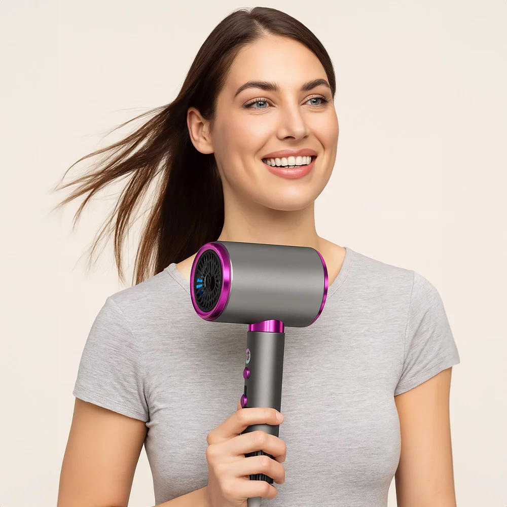 Negative ions emitted by this hairdryer reduce frizz and enhance shine for smoother, softer hair.