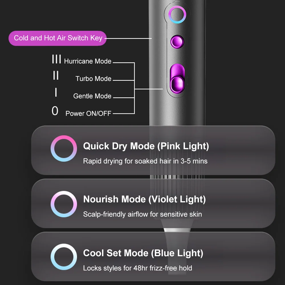 Professional Powerful Hair Dryer High-Speed Negative 2400W Quick Drying Hot and Cold Air Constant with Curly Nozz