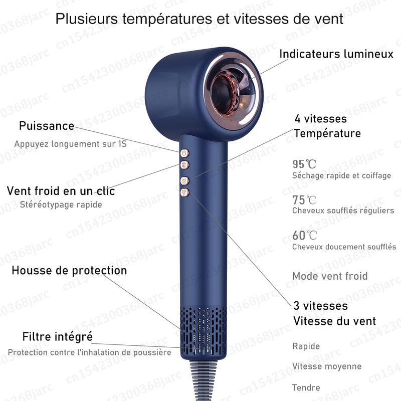 1.Negative Ion Function: The anion generator of the hair blow dryer produces millions of negative ions to protect your scalp from heat damage,smooth hair.