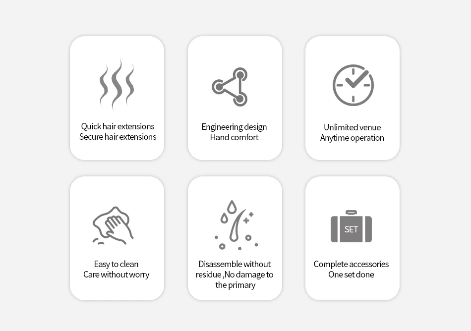 1. Before use, please clean the customer's hair and use degreased shampoo as much as possible. Do not use conditioner or hair oil. Thoroughly blow dry it and then extend it after the hair is completely dry. Please strictly follow the installation process.
