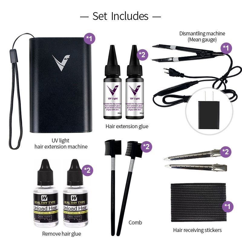​​Professional UV Light Hair Extension Kit with Glue Fast Grafting Traceless & Long Lasting Complete Salon Styling Tools Set