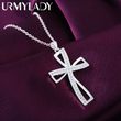 Promotions 45cm 925 sterling silver necklace charm for women cyrstal Cross pendant chain jewelry fashion cute wedding party