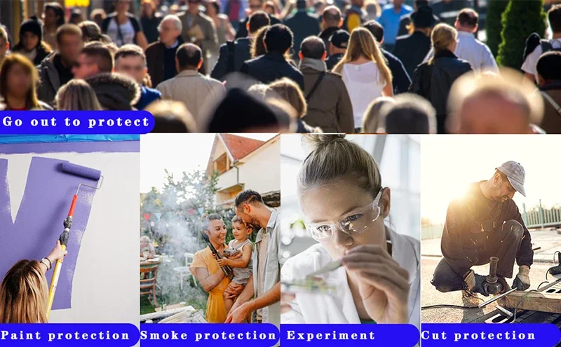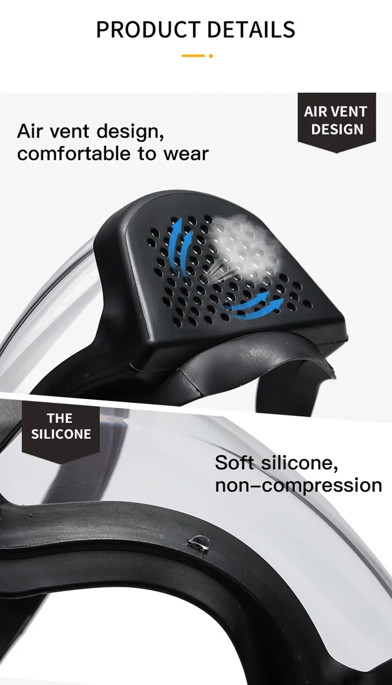 Pliable And Tough: Anti-fog polycarbonate lens, high-definition transparent,which prevents chemicals, saliva droplets, and paints from splashing into the eyes.