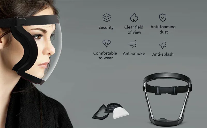 This anti-fog full face shield has large lenses, provides excellent optical clarity and panoramic vision, and uses a soft silicone frame, which can perfectly fit the face, suitable for most people's faces and provide long-term comfort, full-face The design ensures full protection from the head to the chin, and we provide filter pads, which can protect your every breath!