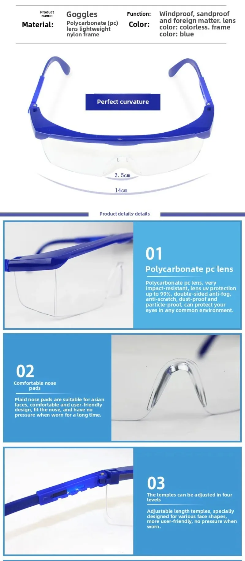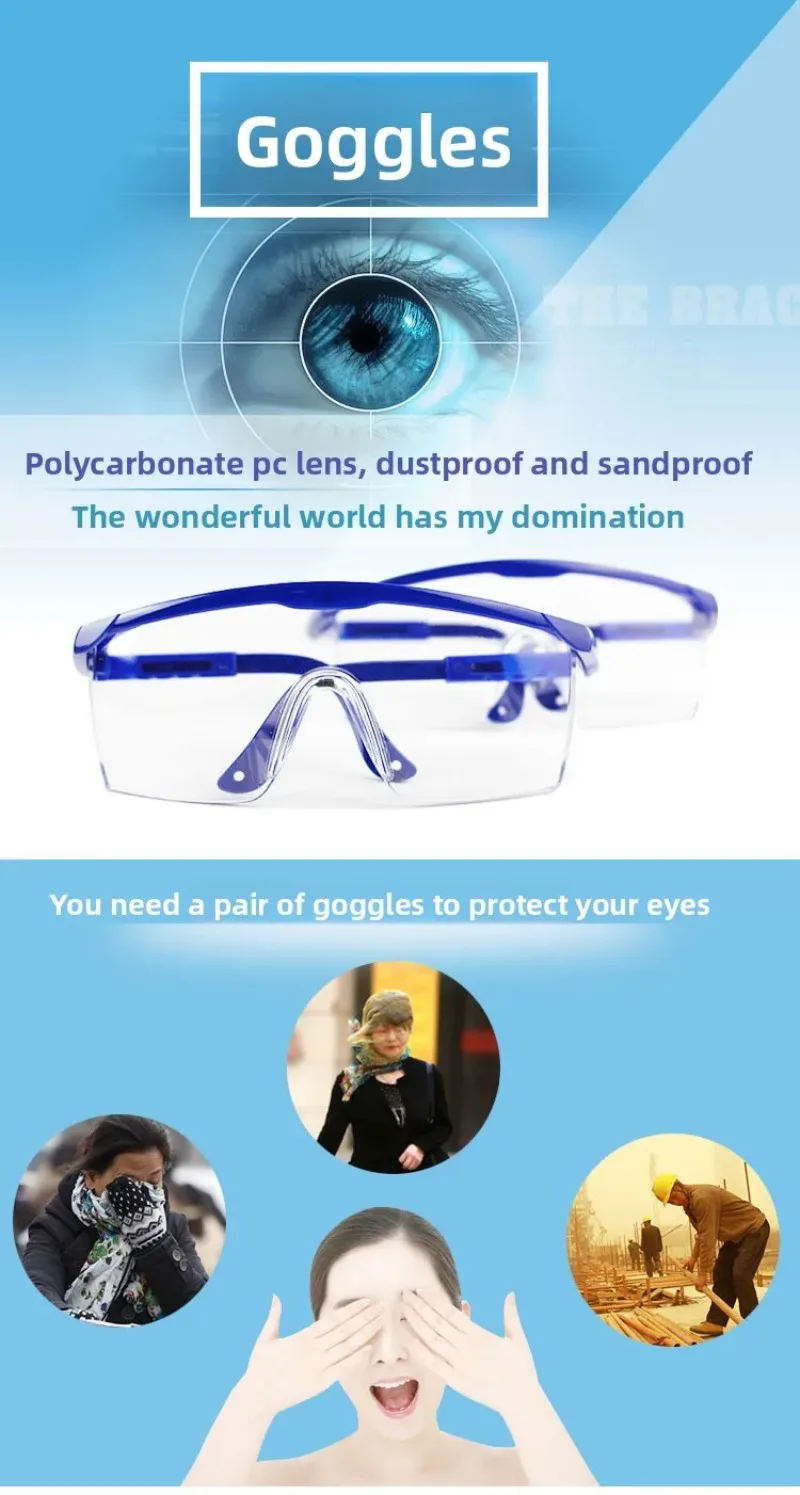 Protective Riding Goggles, Impact-resistant, Splash-proof, Transparent, Sand-proof, Windproof, Dustproof,chemical Safety Glasses